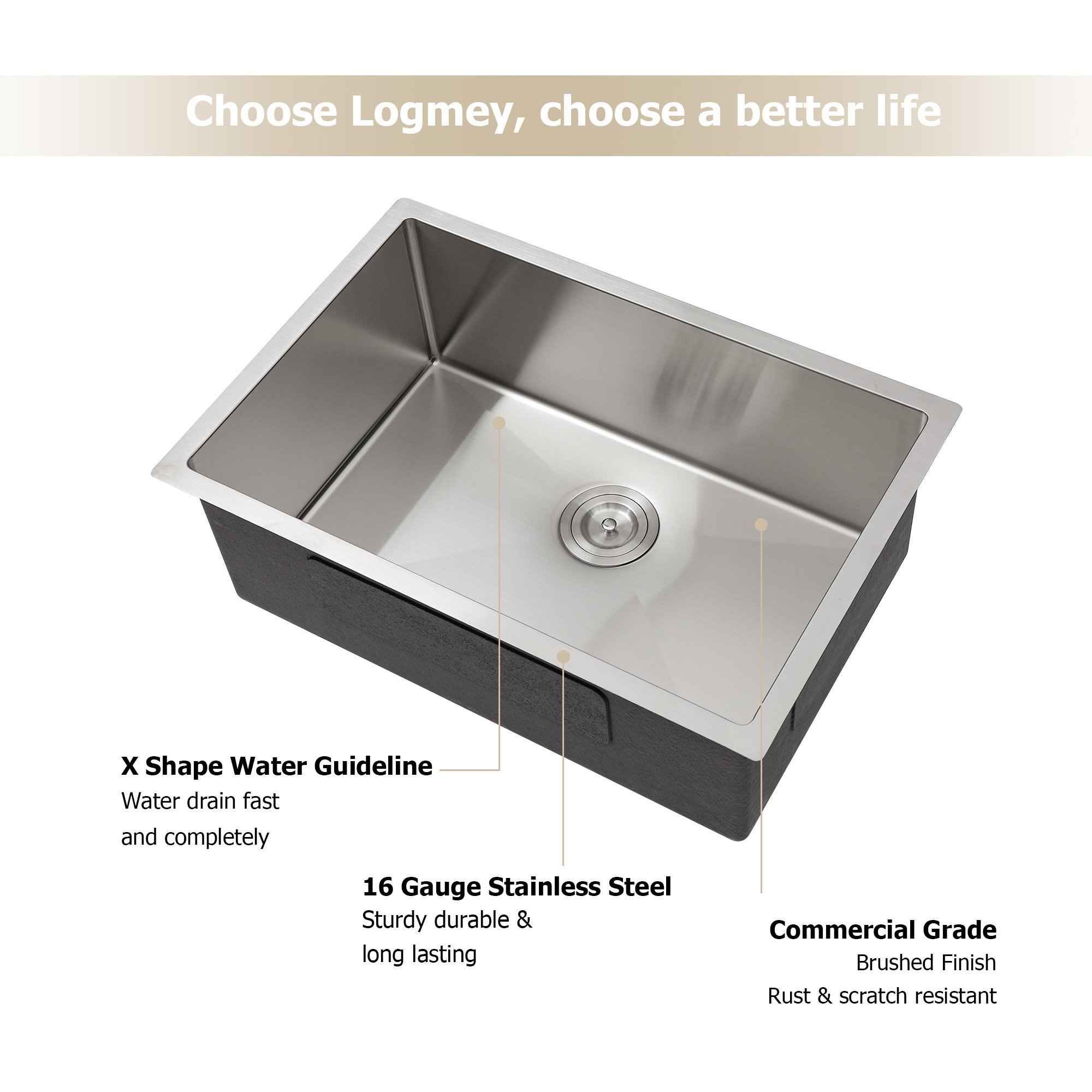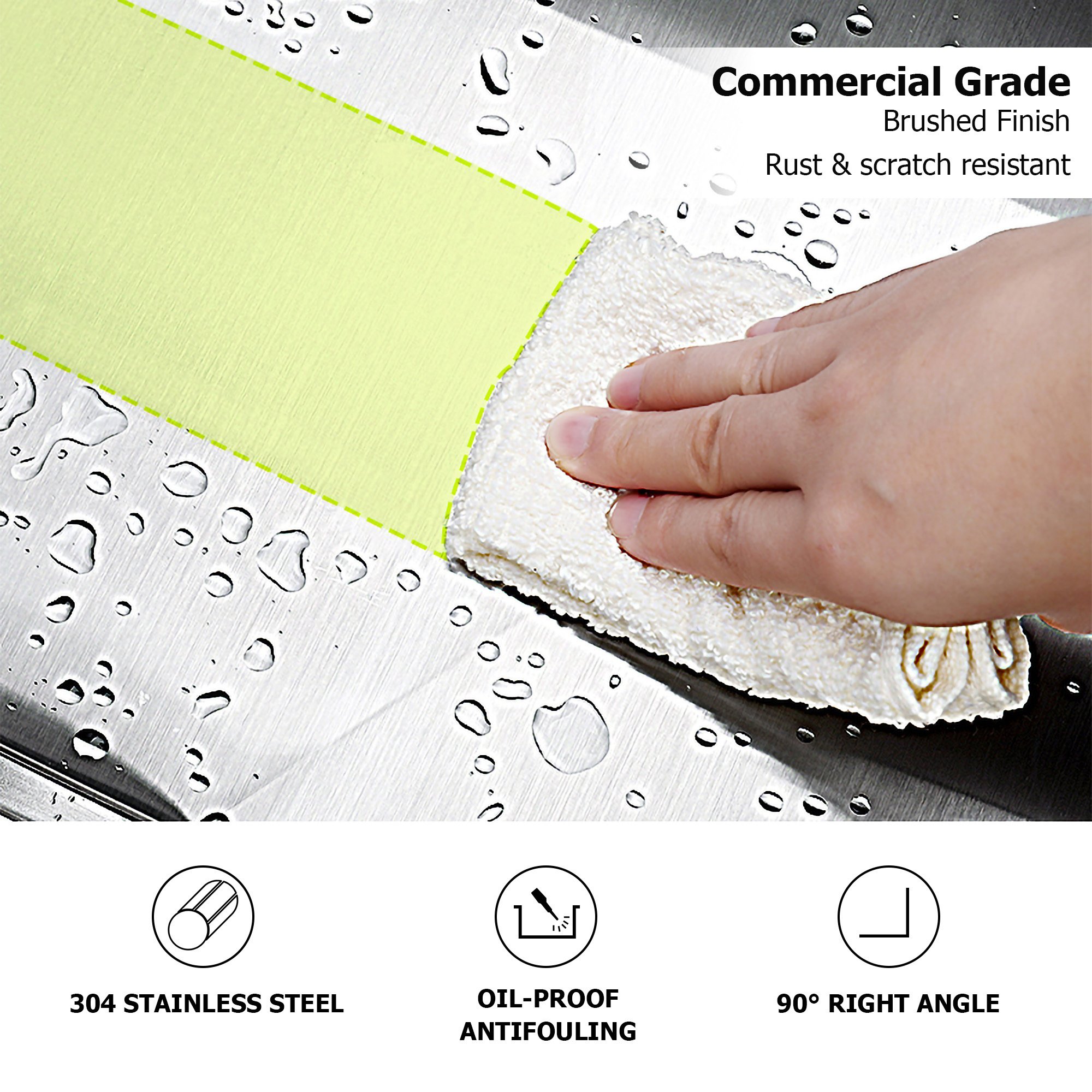 1.This stainless steel kitchen sink uses 16 Gauge T304 stainless steel,corrosion resistance, good toughness, good plasticity, non-toxic and harmless.