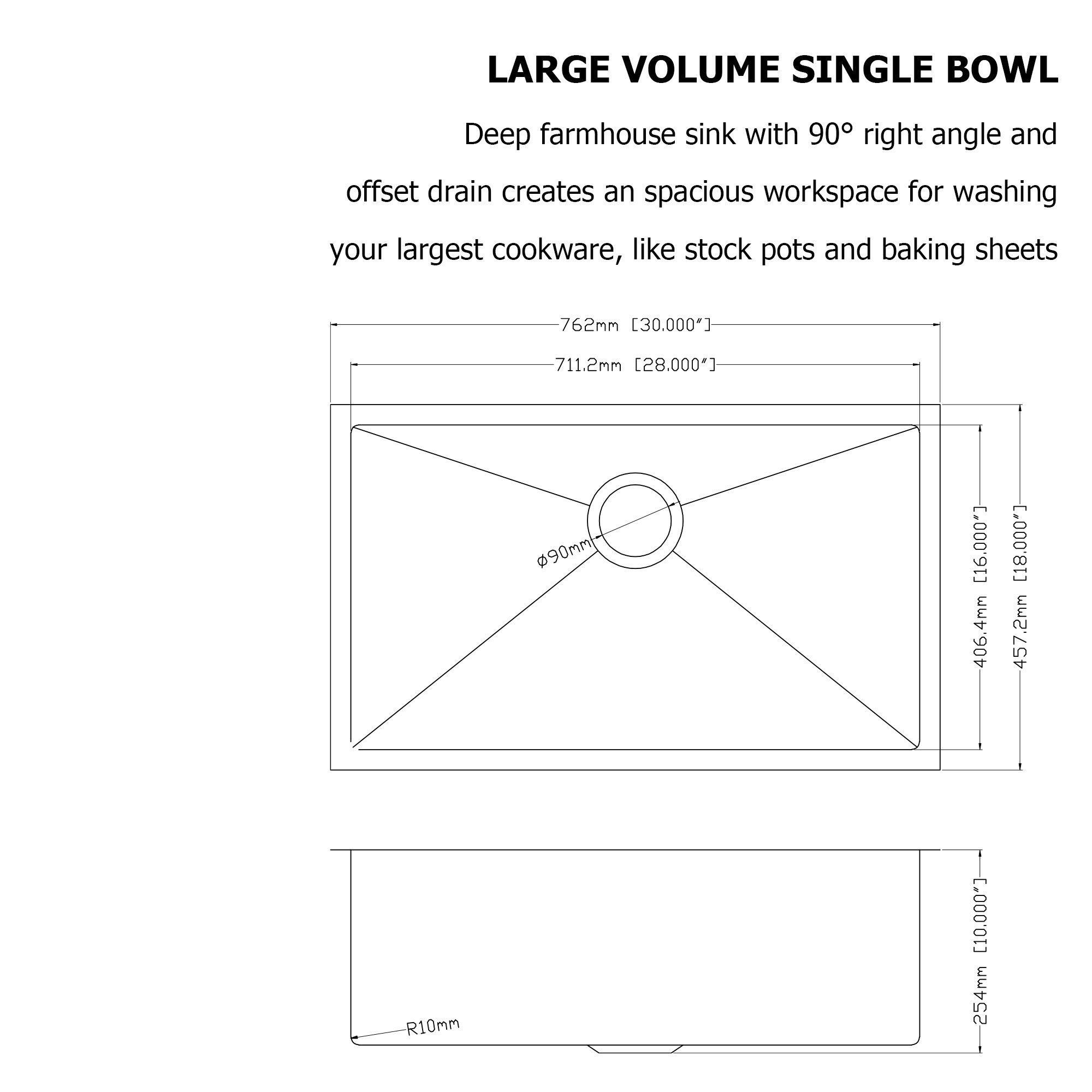 3.3.5 inches drain hole which can be connected with garbage disposal and R-10 angle design offer an easy way to clean.