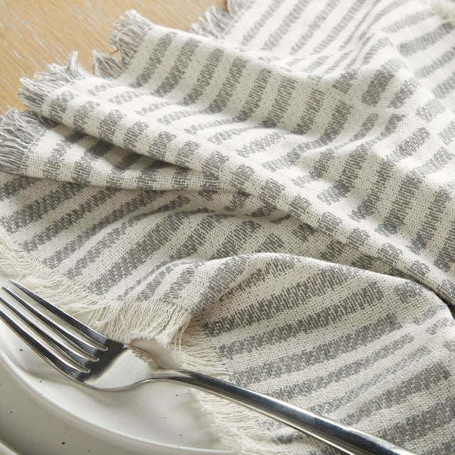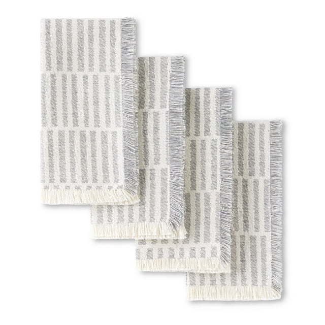 No one denies that the kitchen is the heart of the home, and the dining table is the ultimate gathering spot to share a conversation and satisfying meal. Better Homes & Gardens table and kitchen and dining textiles will create a warm, inviting living space with colors and prints that you and your family will love. Create a custom and coordinated tablescape and kitchen decor with Better Homes & Gardens tablecloths, all while incorporating decorative accents with table runners, placemats, and chair cushions. Serve up a warm welcome to family and guests with the gray Better Homes & Gardens Fabric Napkins gracing your dining table. This set of 4 fabric napkins that will create a casual, welcoming space for your guests. The Better Homes & Gardens Fabric Napkins will add style and function to your table decor. Create your own custom look that reflects your style by mixing and matching with coordinating pieces. These napkins will create a welcoming look for your dinner party yet are practical for everyday use. These easy to clean fabric napkins are constructed of cotton/polyester blend material making them machine washable for easy care. Includes 4 napkins. Measures 19"W x 19"L. Imported. Found exclusively at Walmart.com.