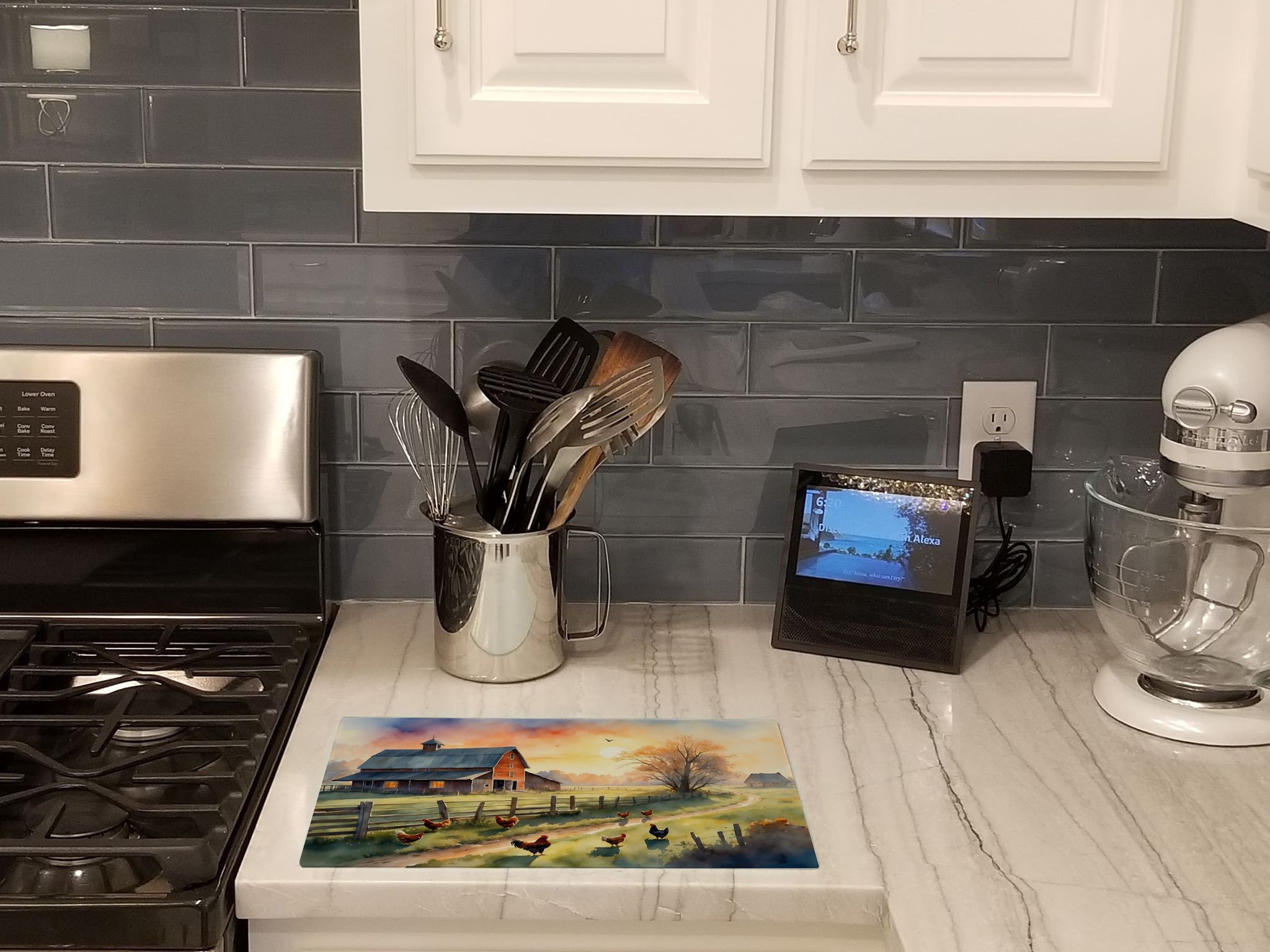 Home > Chicken Farmyard Sunrise Glass Cutting Board Decorative Tempered Glass Kitchen Cutting and Serving Board Large Size Chopping Board