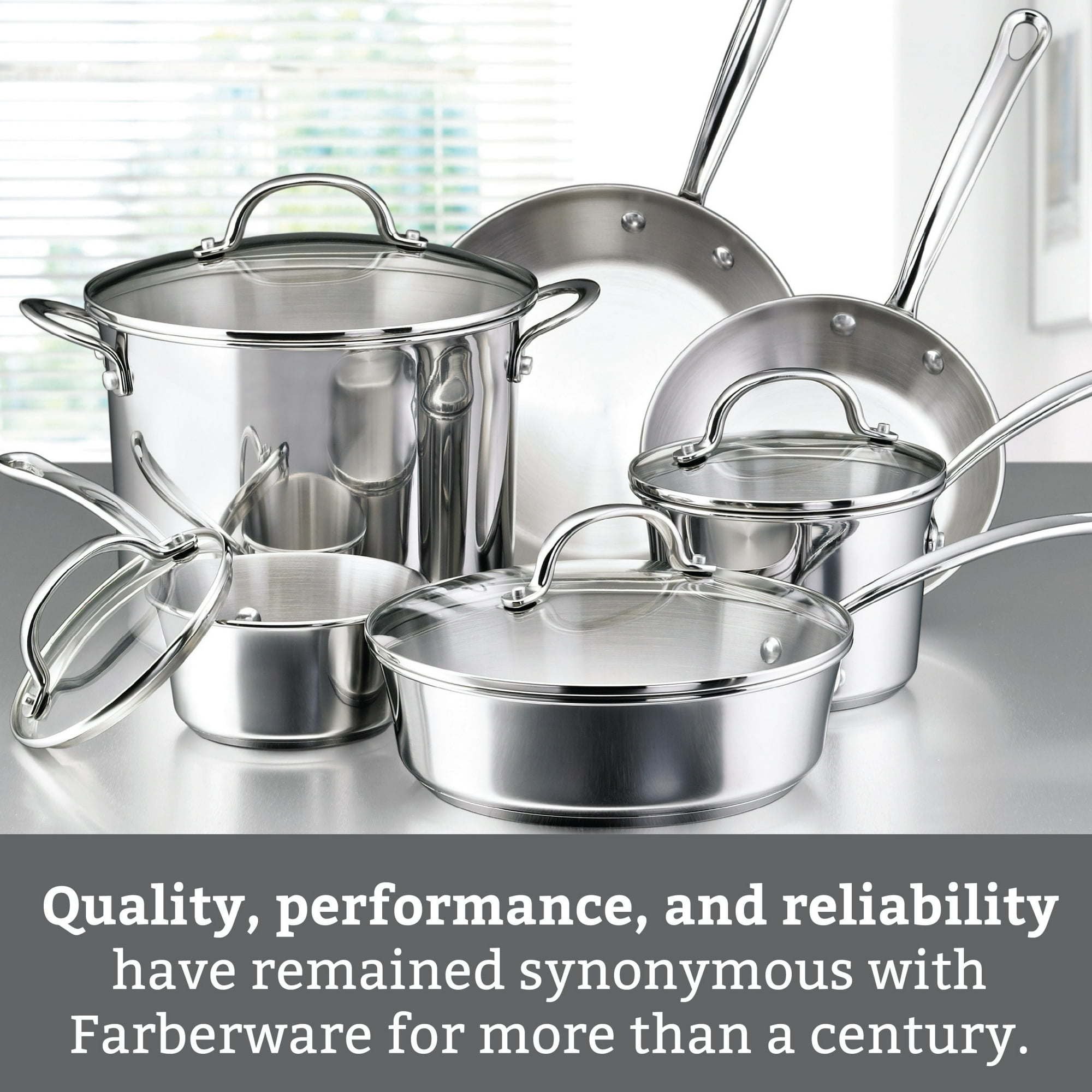 Farberware Millennium 10 Piece Stainless Steel Pots and Pans, Silver