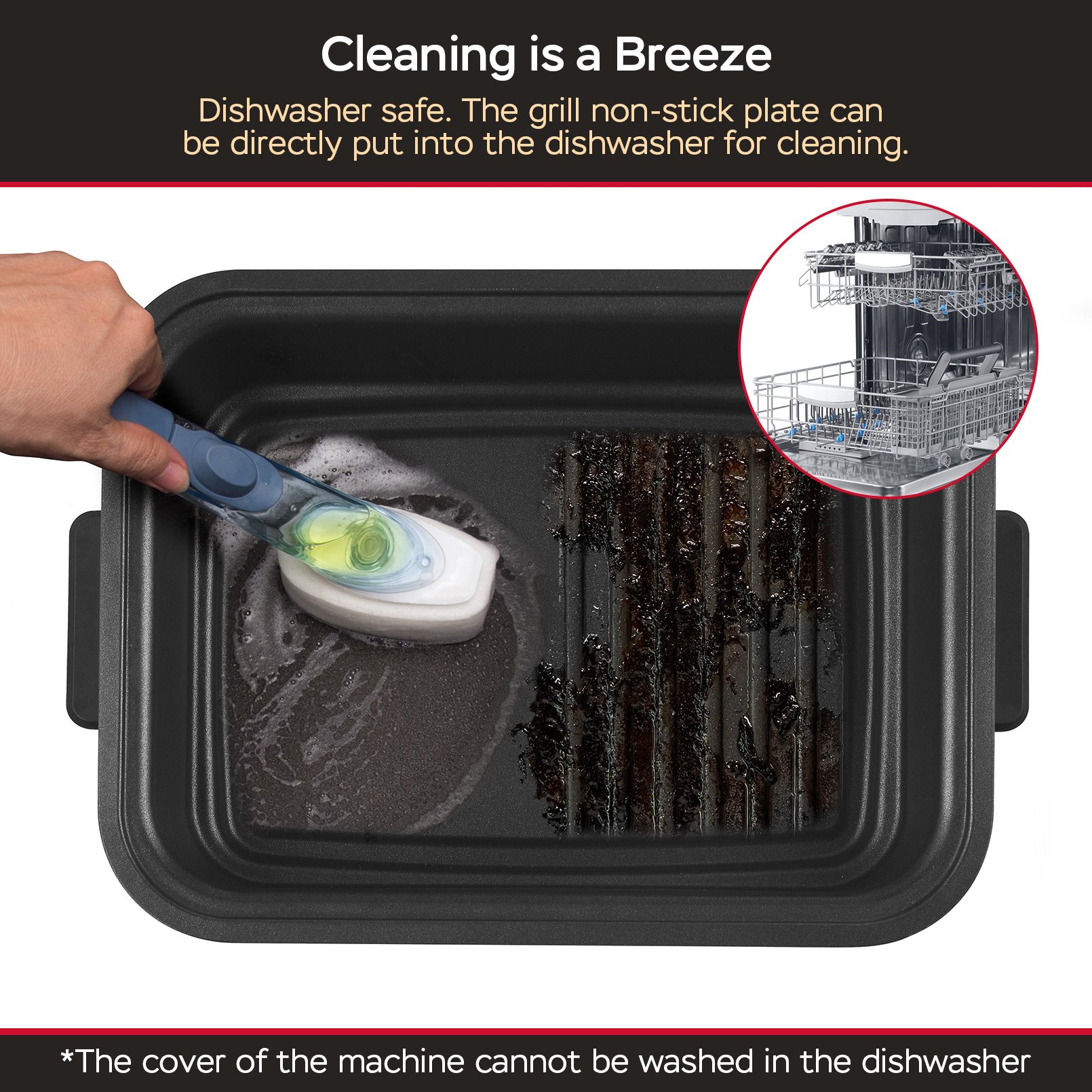 • Dishwasher Safe & Easy to Clean - Clean up your electric grill in less than a minute! Nonstick Cooking Pot, food slides directly from non sticky surfaces, making it easier to clean. Nonstick cooking pot and air fry basket are removable for easy. Dishwasher Safe Cleaning. Even the cooking pot can be cleaned by hand, which is easy.