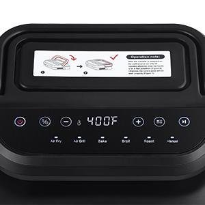 • Not Just Indoor Grill, But Air Fryer - It has 7 excellent cooking functions: air fry, air grill, bake, broil, roast, reheat, manual.One machine is multi-purpose, saving valuable table space. So you can cook 350g French fries, 12pcs chicken wings, 1kg whole chicken.