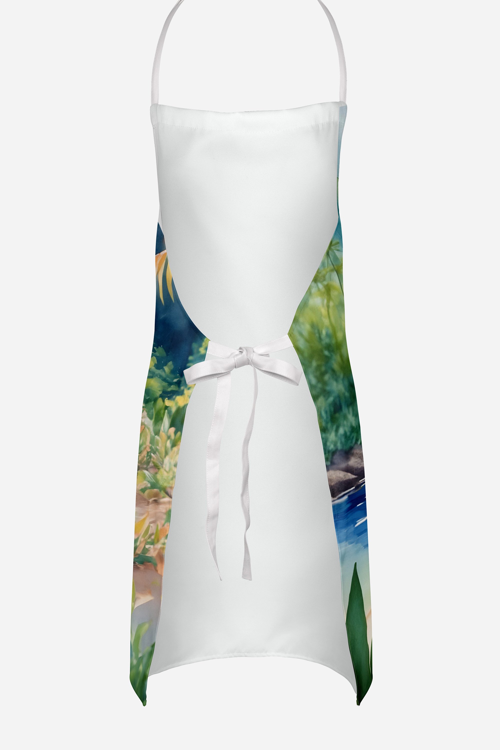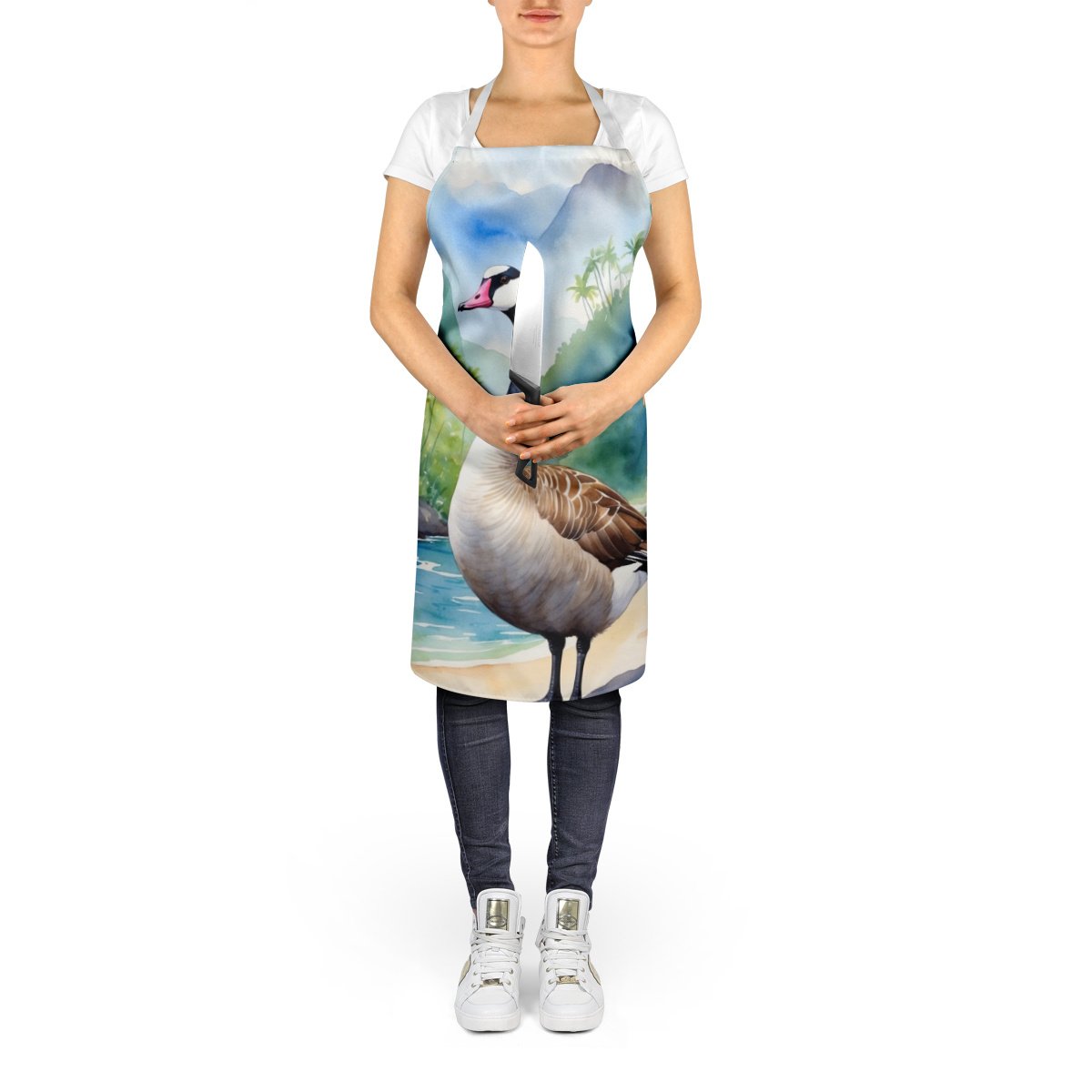 Apron featuring breed specific Hawaiian Goose artwork. Elevate your cooking, baking, and grilling experiences with our versatile Kitchen or BBQ Apron. This Bib Style apron isn't just limited to culinary activities - it also serves as an excellent baking apron, artist apron, server apron, gardening apron, or even a dog grooming apron. The apron showcases vibrant full-color artwork contributed by one of our talented artists, bringing a dash of style to your daily tasks. With dimensions of approximately 27"W x 30"H, it provides ample coverage to protect your clothing from spills and splashes. Our apron is meticulously crafted from 100% Ultra Spun Polyester, known for its durability and lightweight nature. The apron comes with white tie straps, ensuring a comfortable and adjustable fit for all. It's a perfect choice for kitchen apron enthusiasts, whether you are a woman or a man. Designed for easy maintenance, this apron is fully machine washable. The quick-drying polyester material actively reduces staining, keeping your apron looking fresh and new for longer. Our beautifully designed apron isn't just a functional kitchen accessory - it's a fashion statement in the culinary world!
