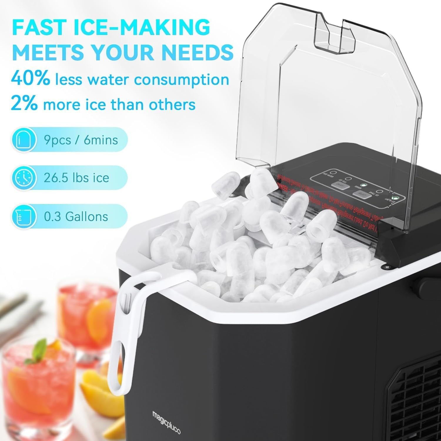 Home > Ice Makers Countertop, Ice Machine With Carry Handle, 9 Cubes In 6 Mins, 26.5 Lbs Per Day, Self-Cleaning Portable Ice Maker