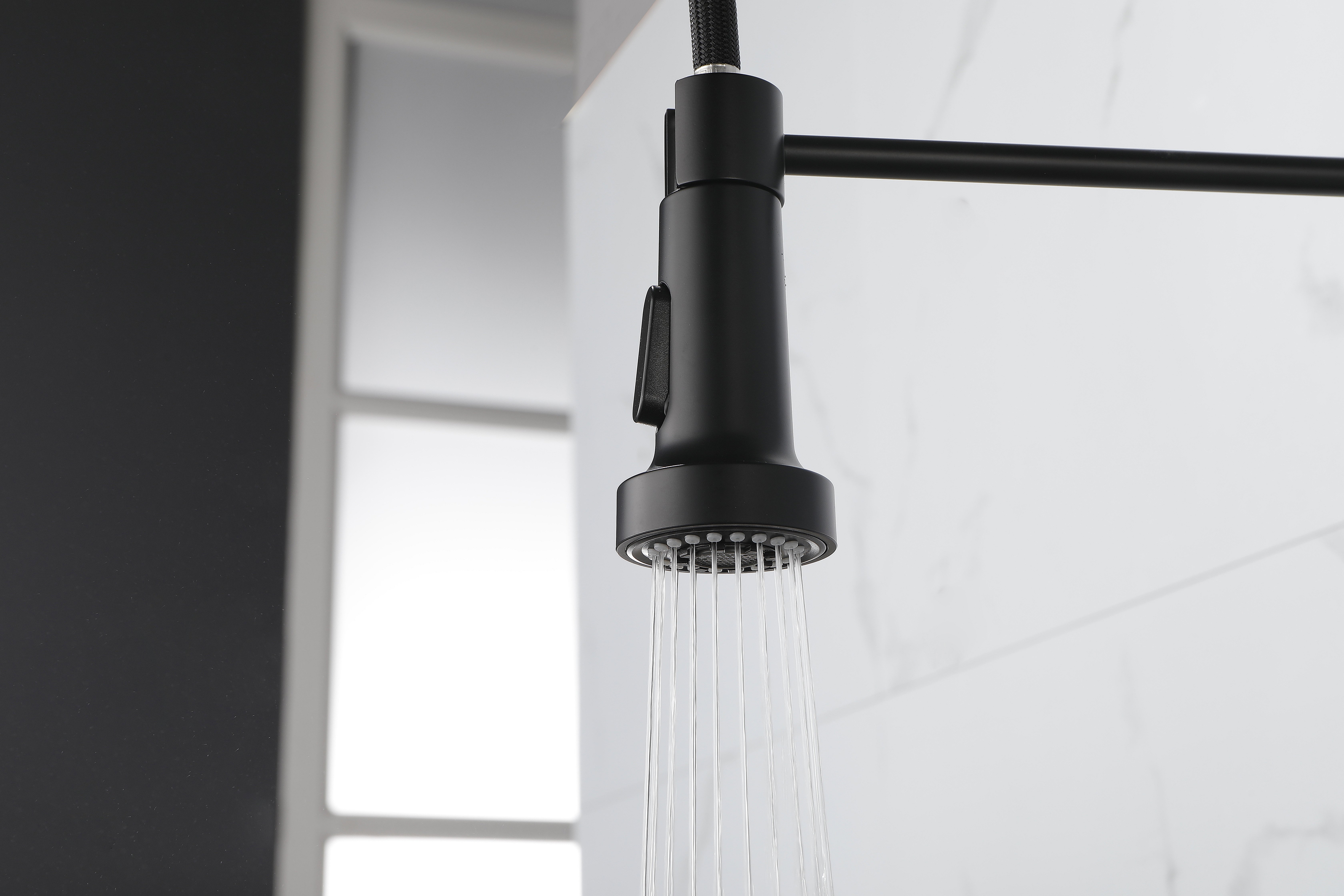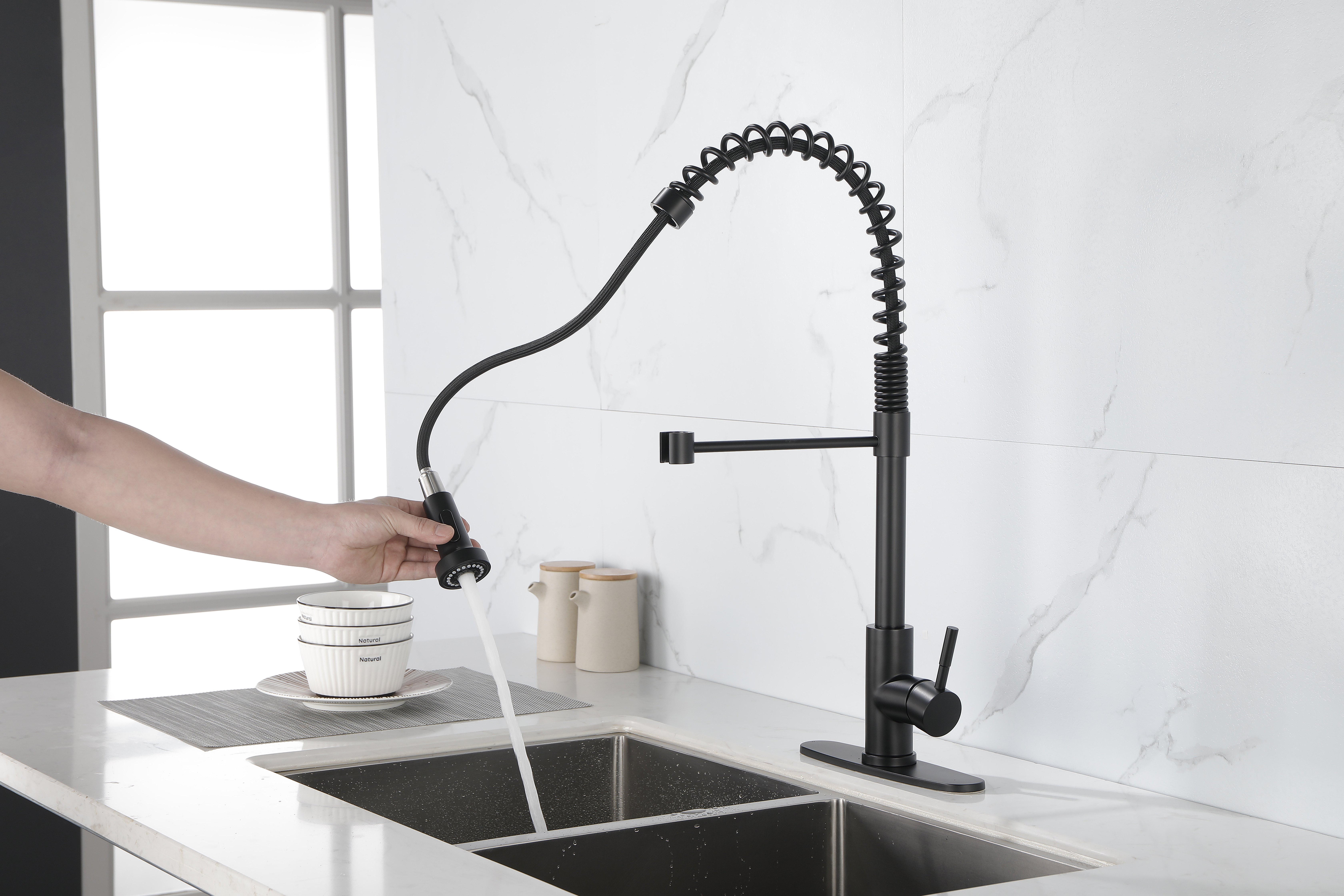 2.DUAL MODE SETTING - Your kitchen faucets with pull down sprayer provides soft aerated streamand splash-free powerful spray due to its hard rubber sprayer holes