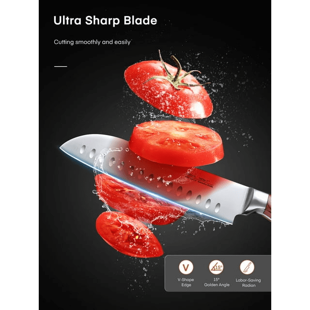 Great kitchen top cutlery set: ergonomically pakkawood handles provide comfort and confidence in handling. Forged design for increased weight and balance. Strong, durable bolster for perfect stability and control.