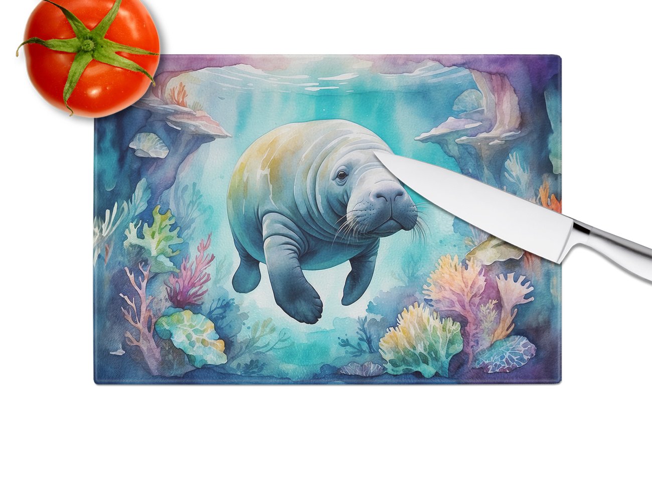Home > Manatee in a Dreamscape Glass Cutting Board Decorative Tempered Glass Kitchen Cutting and Serving Board Large Size Chopping Board