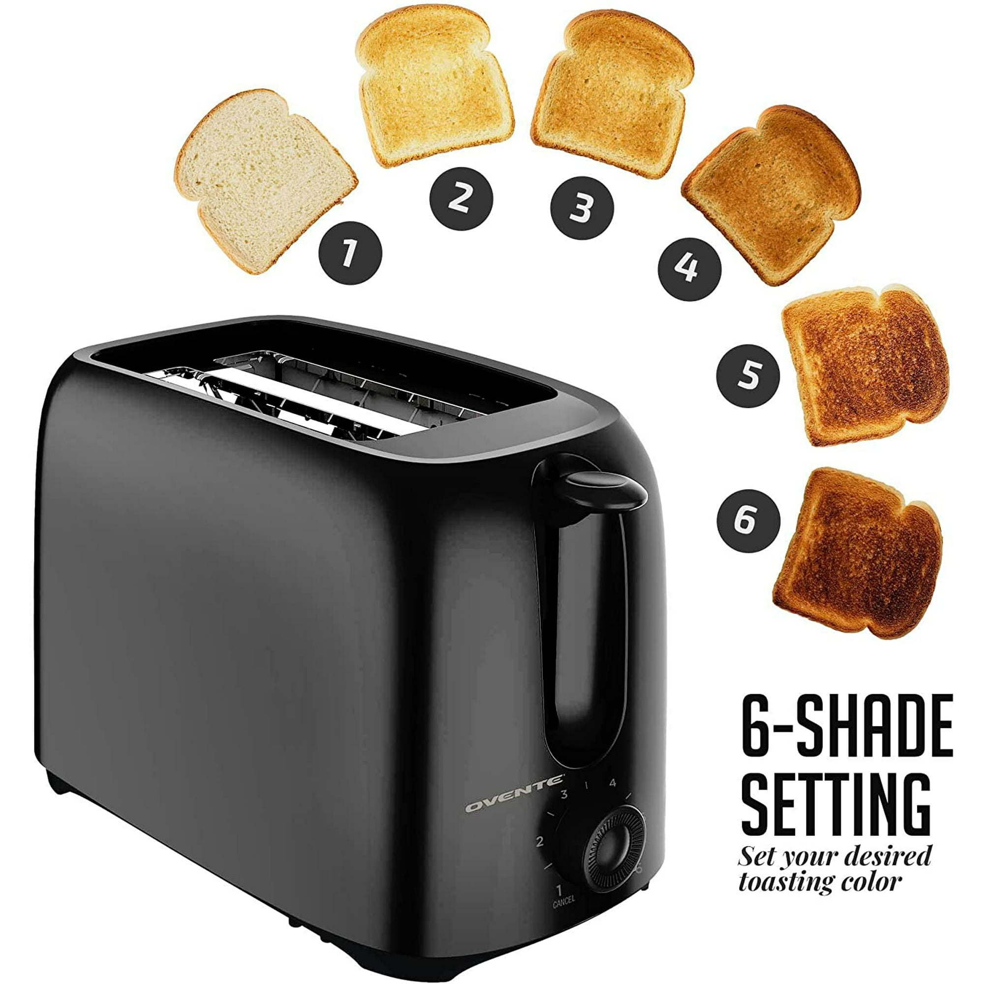 OVENTE 1.7L Electric Kettle + 2-Slice Toaster Combo with 6-Shade Settings, New- Black KP72B + TP2210B