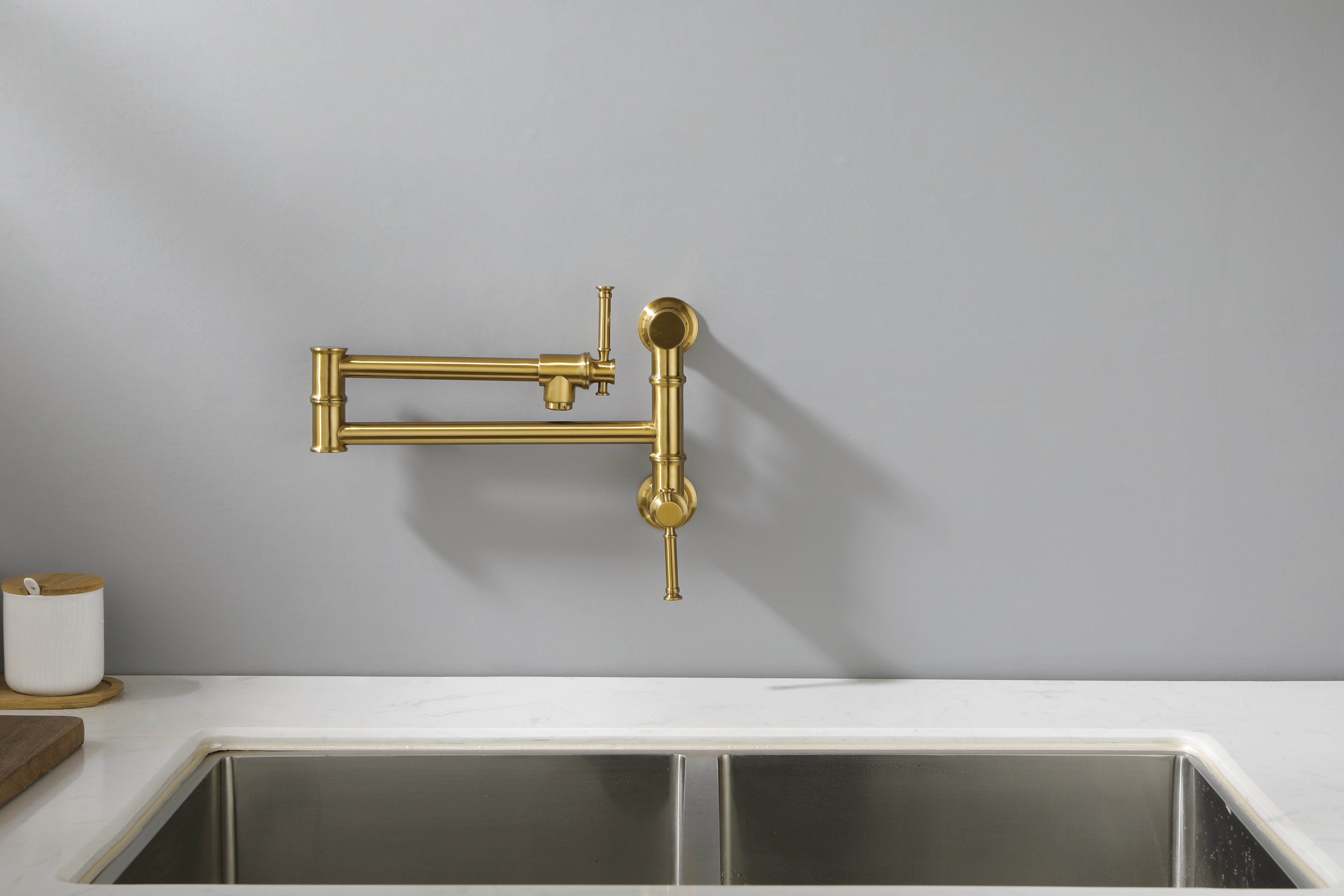 Pot Filler Faucet Wall Mount Pot Filler Faucet, Modern Brass Pot Filler Two-Attachment Wall Mount Folding Kitchen Pot Filler Swing Arm