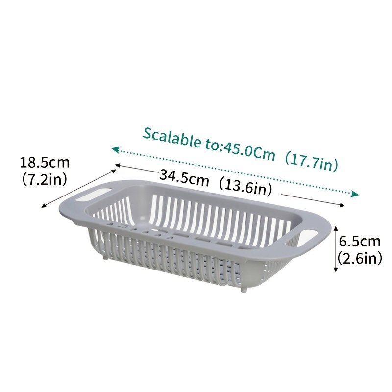 1pc Retractable Fruits And Vegetables Drain Basket; Extendable Over The Sink; Adjustable Strainer; Sink Washing Basket For Kitchen