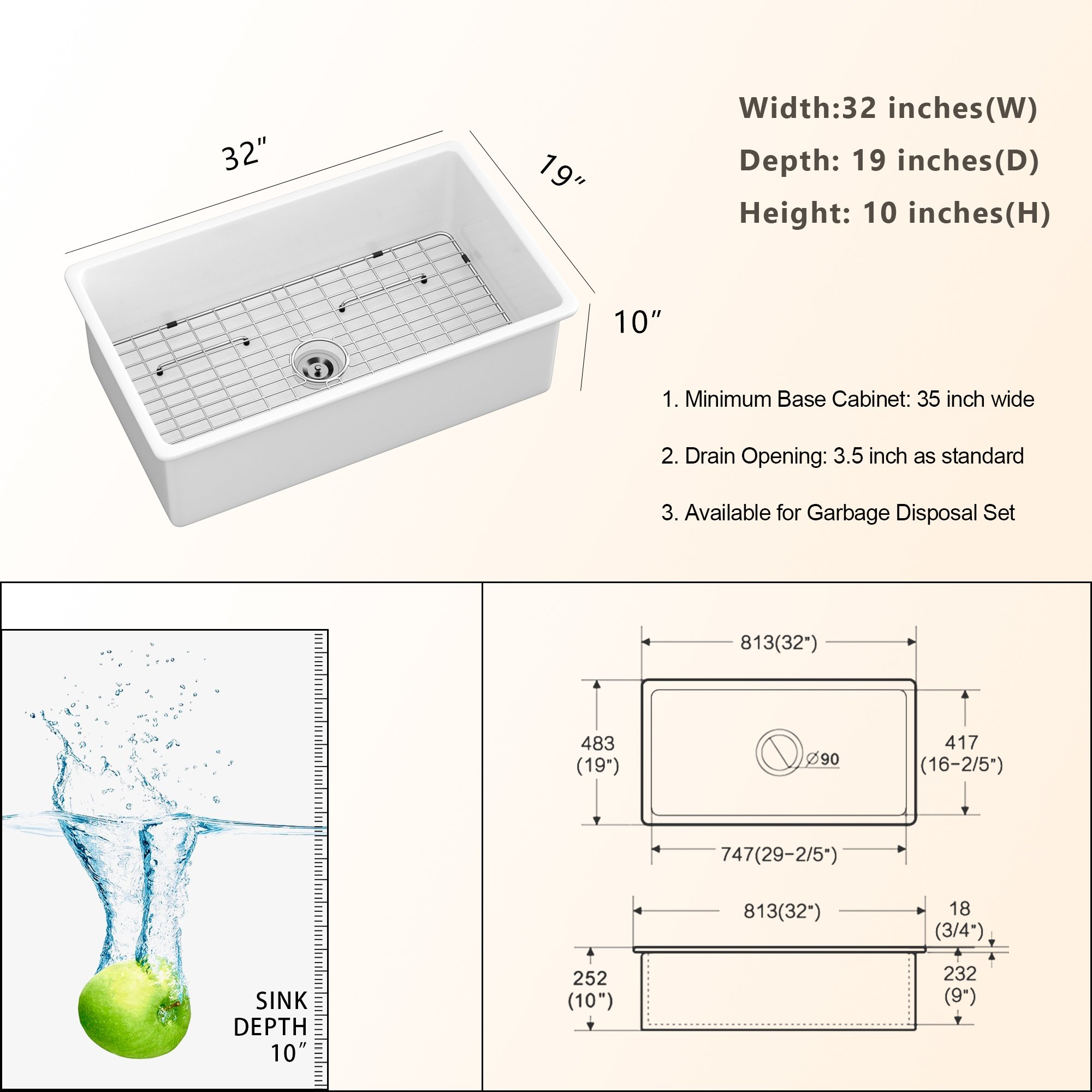 Drain Opening:3.5 inch as standard;