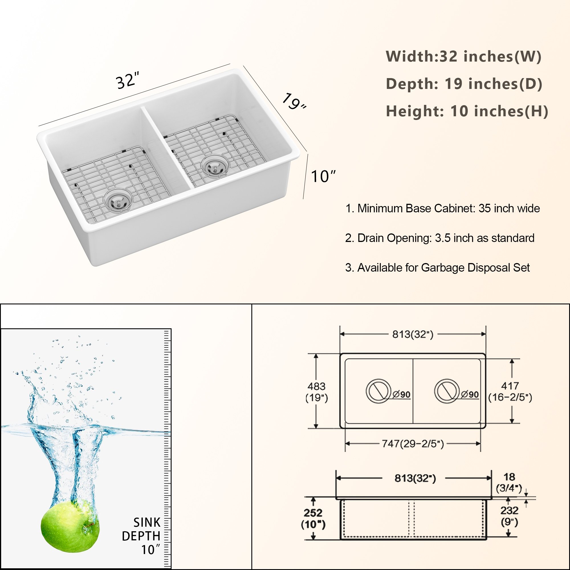 Drain Opening:3.5 inch as standard;