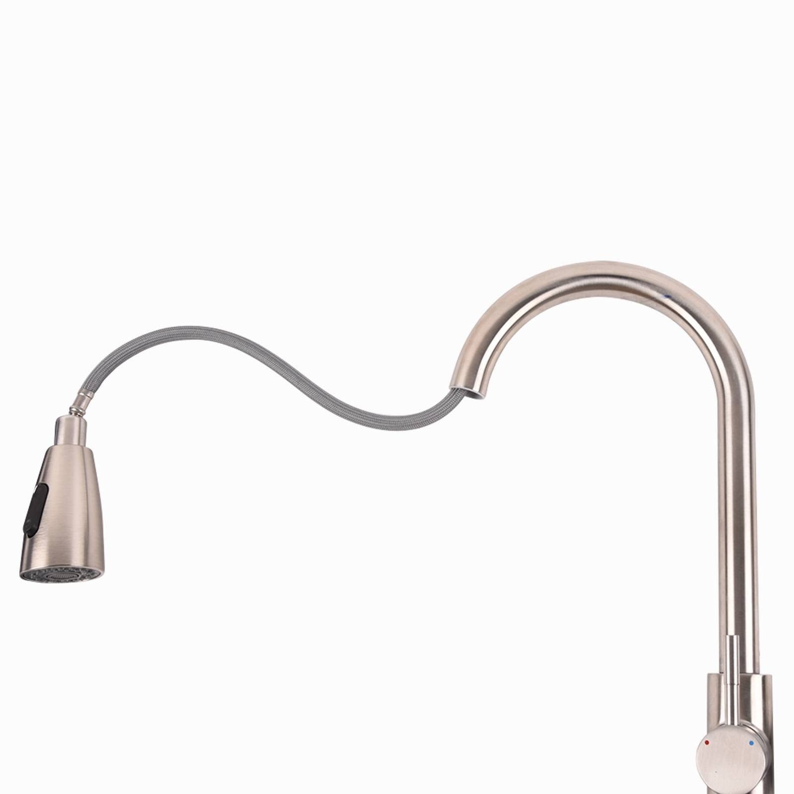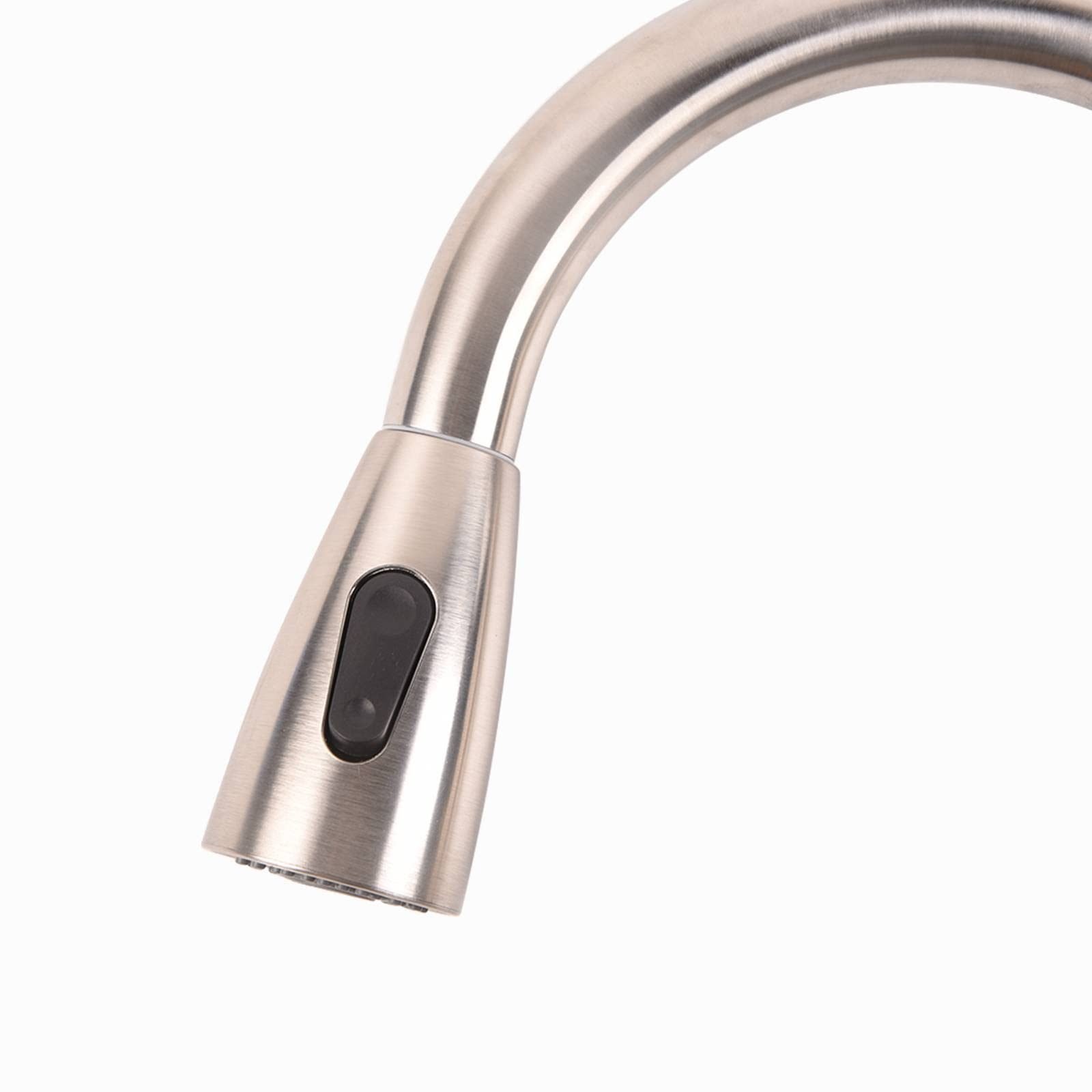 360 Degree Spout and Dual Function Sprayer- Two function spray wand allows you to easily and ergonomically switch from spray to stream. High arch 360 degree swivel nozzle with 20inch pull out hose supply full range of washing for your kitchen sink.