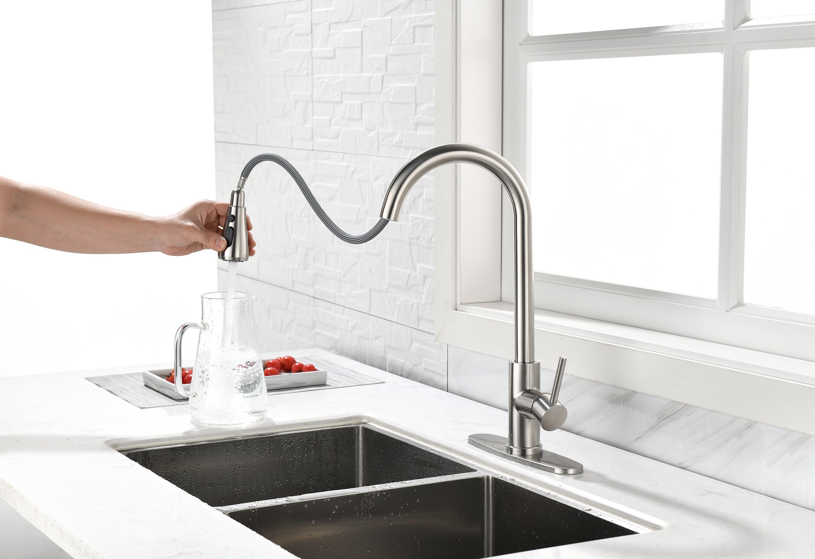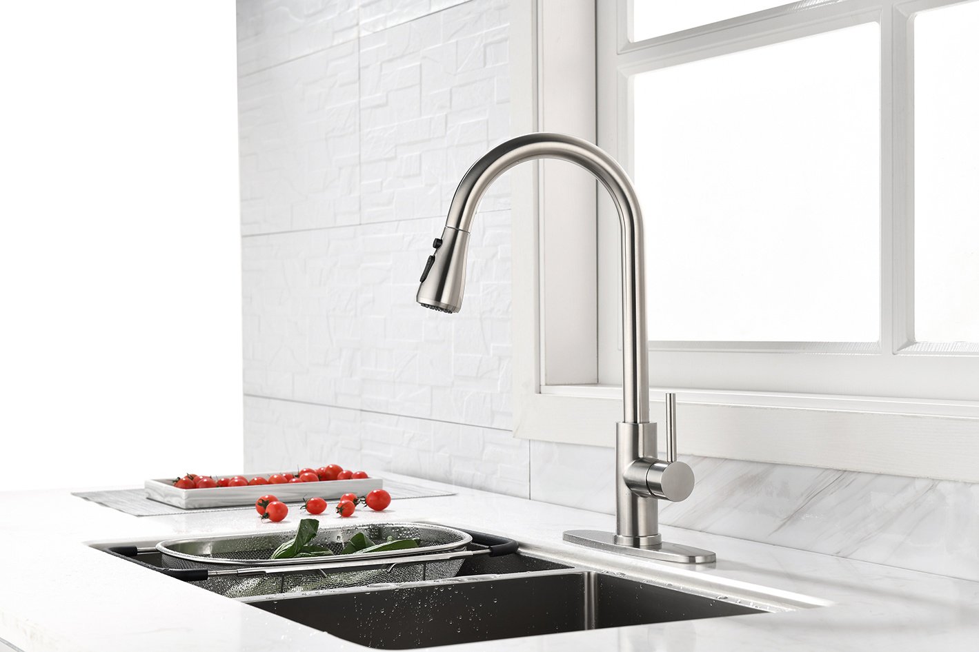 Easy to Install---Pull down hose and water Line hose altogether preinstalled in kitchen faucet to save much time under the sink,no require plumber,finish DIY installation less than 30 minutes.