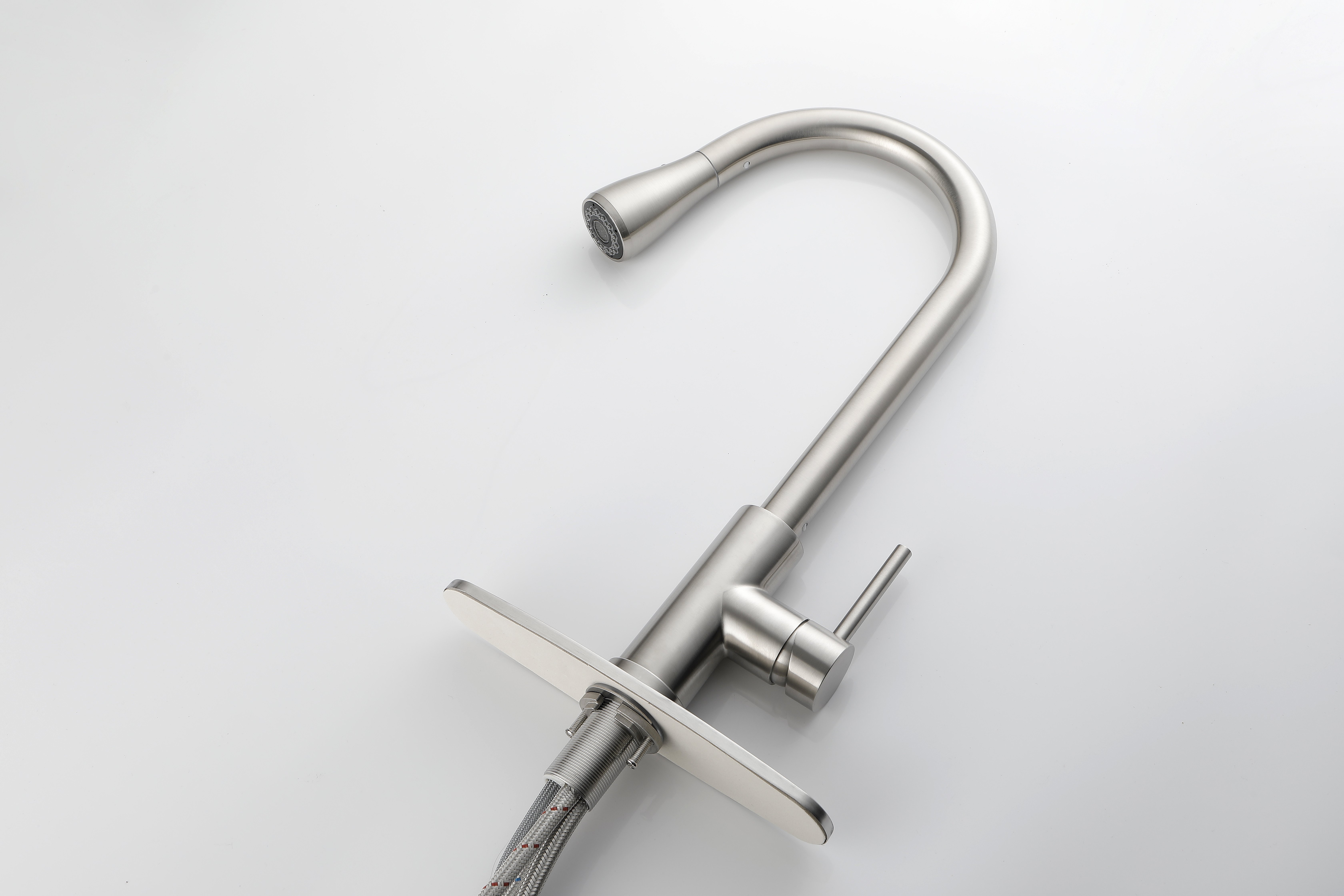 Easy to Operate---Single handle control water temperature and flow volume easily,high arc 360 degree swivel spout supply full range washing access, sprayer head always retract back to spout after each use.