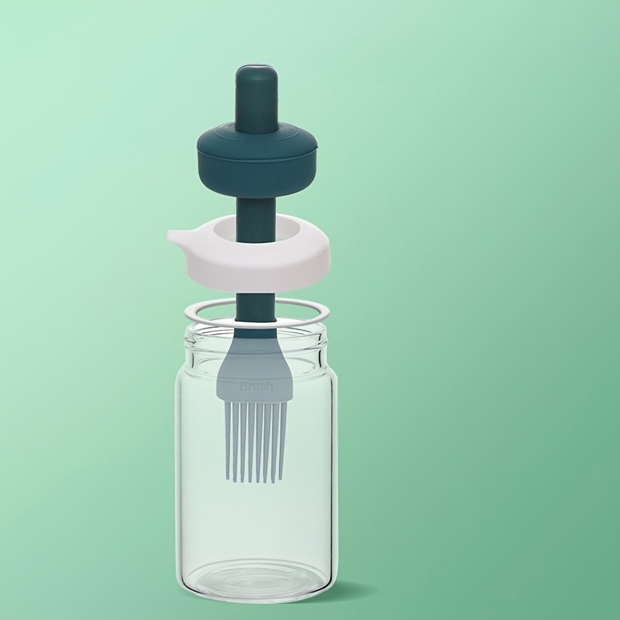 1pc Oil Dispenser; 2 In 1 Wide Opening Bottle With Silicone Brush; Glass Condiment Bottles For Kitchen Cooking; BBQ; Baking