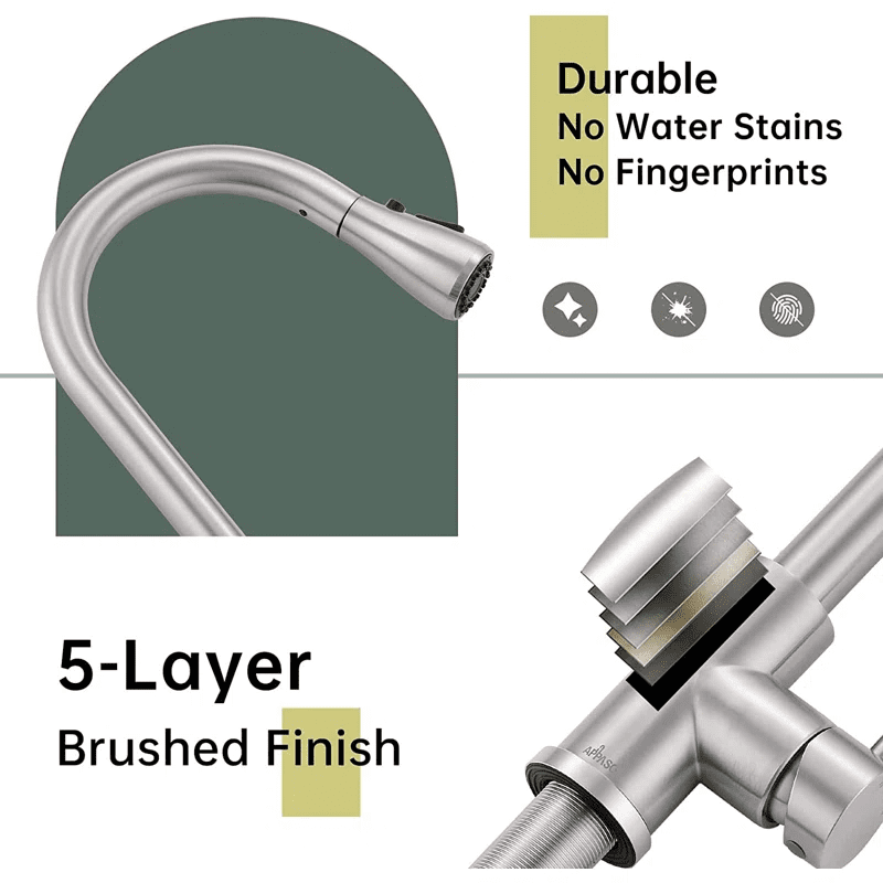 1.The kitchen faucet with a 20” pull-out hose, can reach even deep corners for cleaning. 360°rotation spout and swivel nozzle offer full-range washing access. Appaso kitchen faucets bring more convenience during your everyday kitchen tasks.