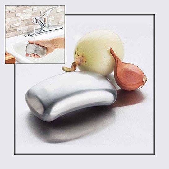 Odor be gone is a scientifically proven special Stainless Steel bar shape like hand soap.   It absorbs the odor and cleans your hand and make it odor free.  Simply just wash your hand while rubbing to the bar and in few minutes the odor is gone.