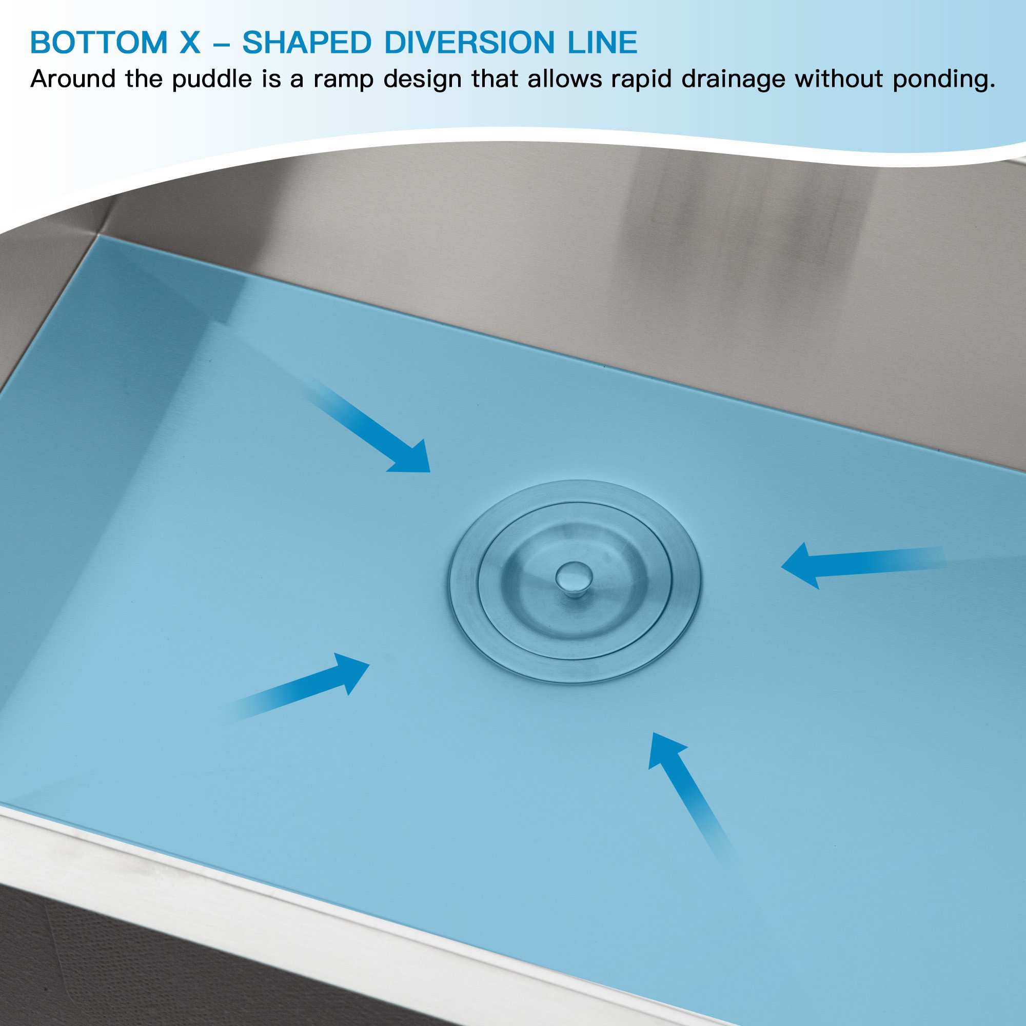 2.Fast Drainage: Little bottom slope design around drain hole and X grooves water guide line on bottom, which is faster to remove water X-shape flow line to avoid clogging while at the same time retaining elegant look and easy to clean.