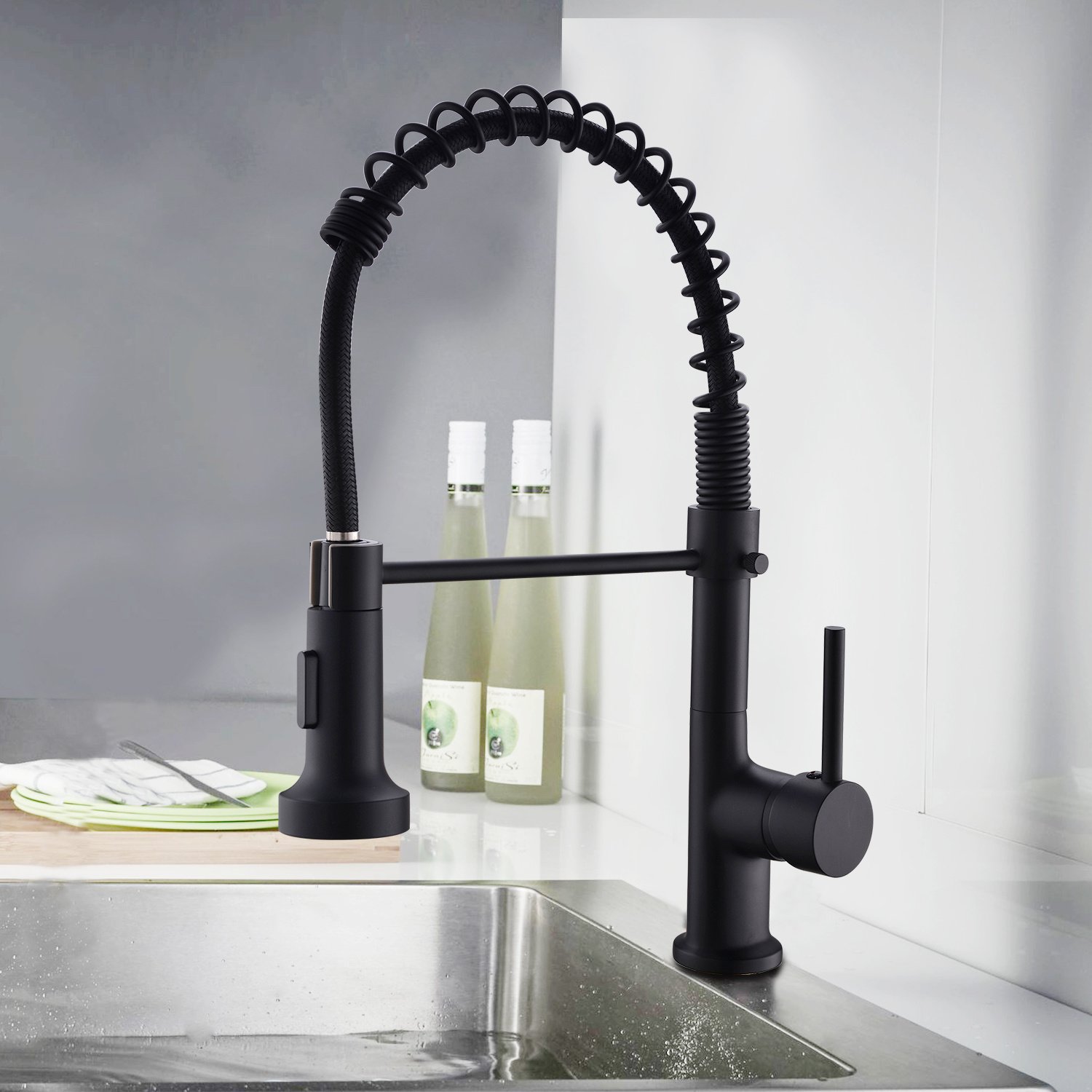 Give your space a stylish refresh with the Kitchen Faucet with Spring Spout. A dual-action head is attached to a retractable, nylon-wrapped hose, providing the choice of an aerated stream or a powerful spray. The high-arching, swiveling spring spout makes cleaning large pots and pans a breeze, and displays a professional look that's sure to make a statement.