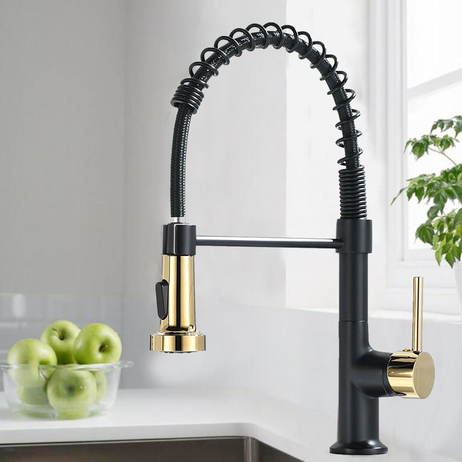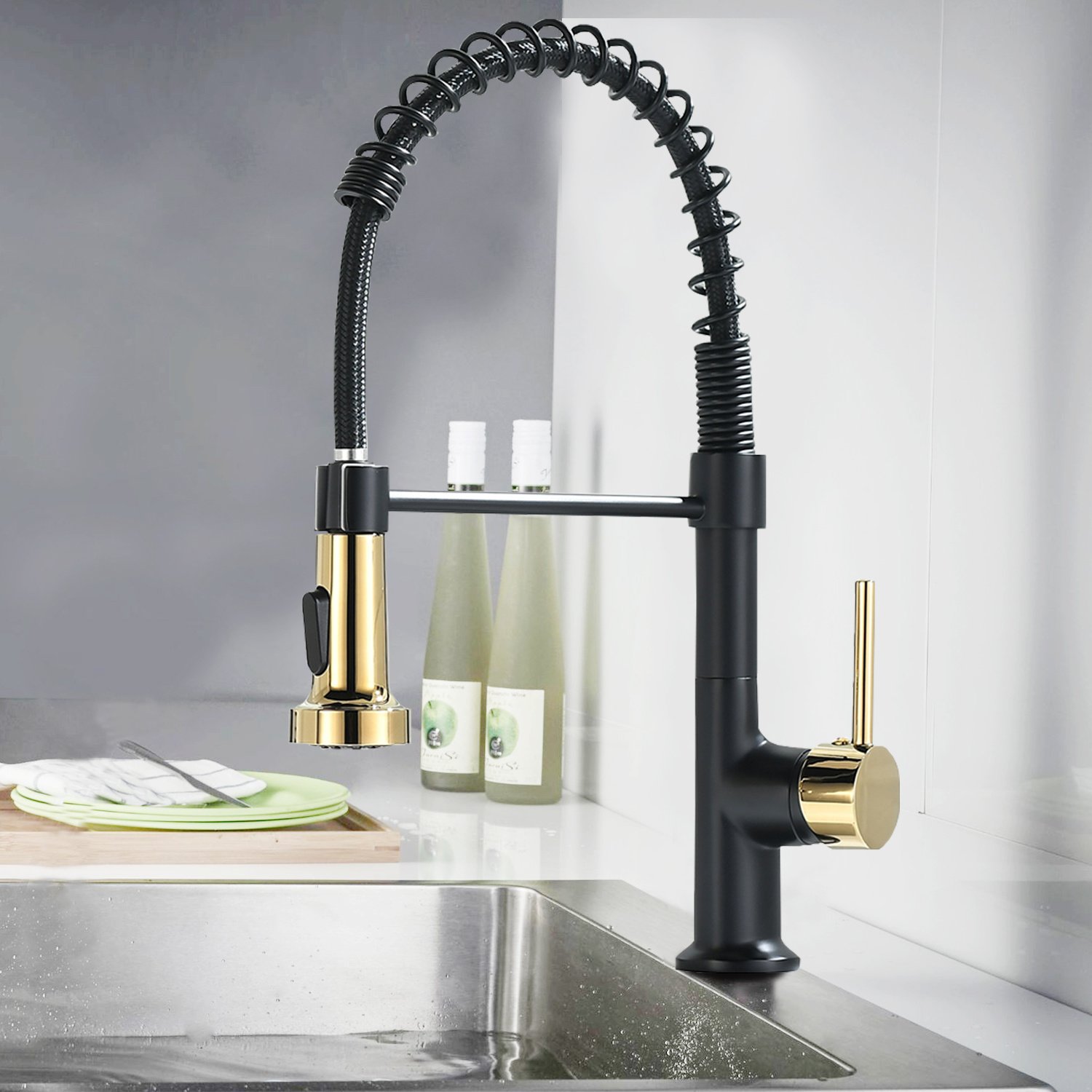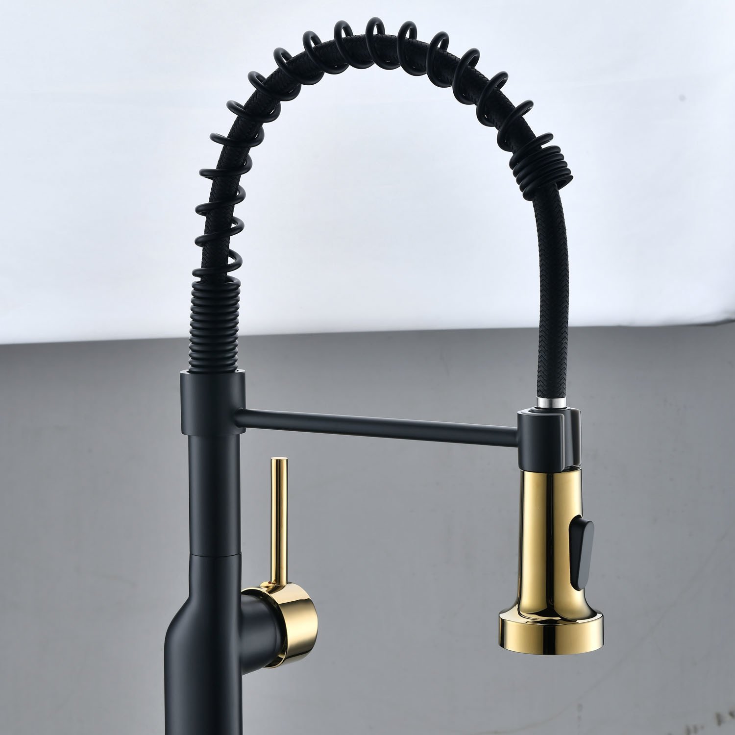 The new model is beautiful and durable Single Handle Pull-Down Sprayer Kitchen Faucet in Black+Gold