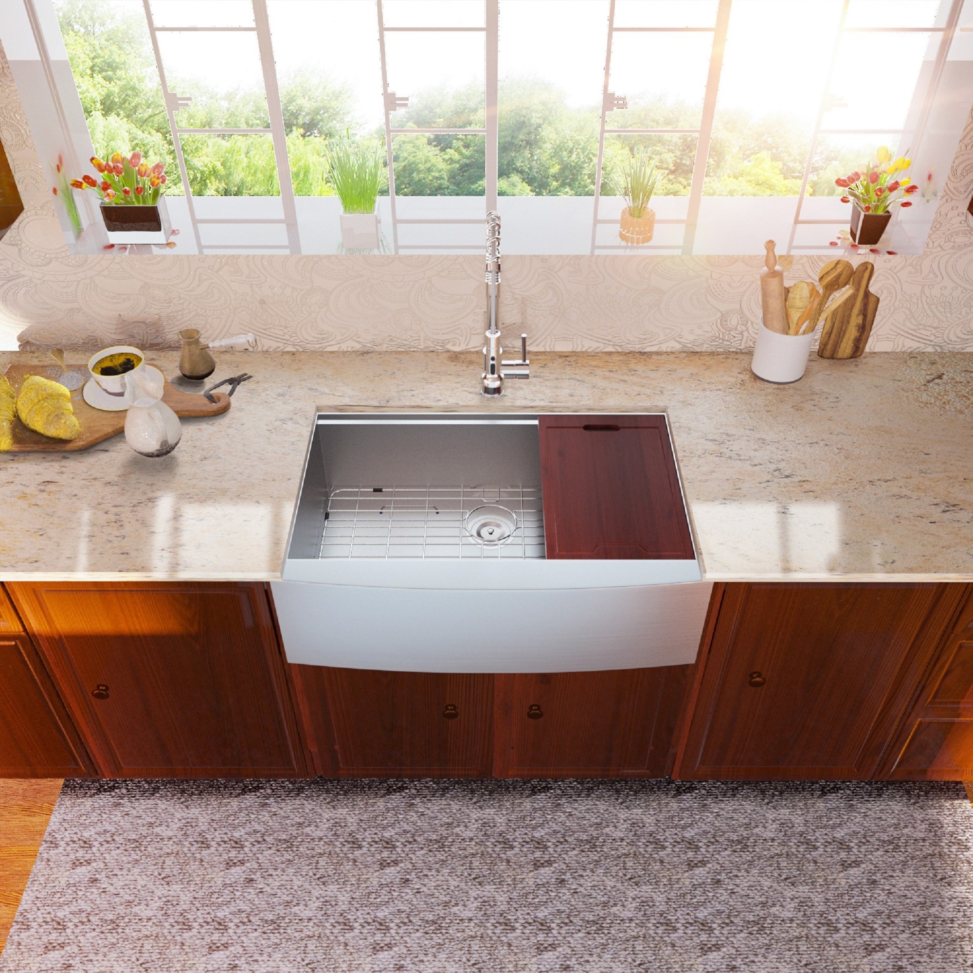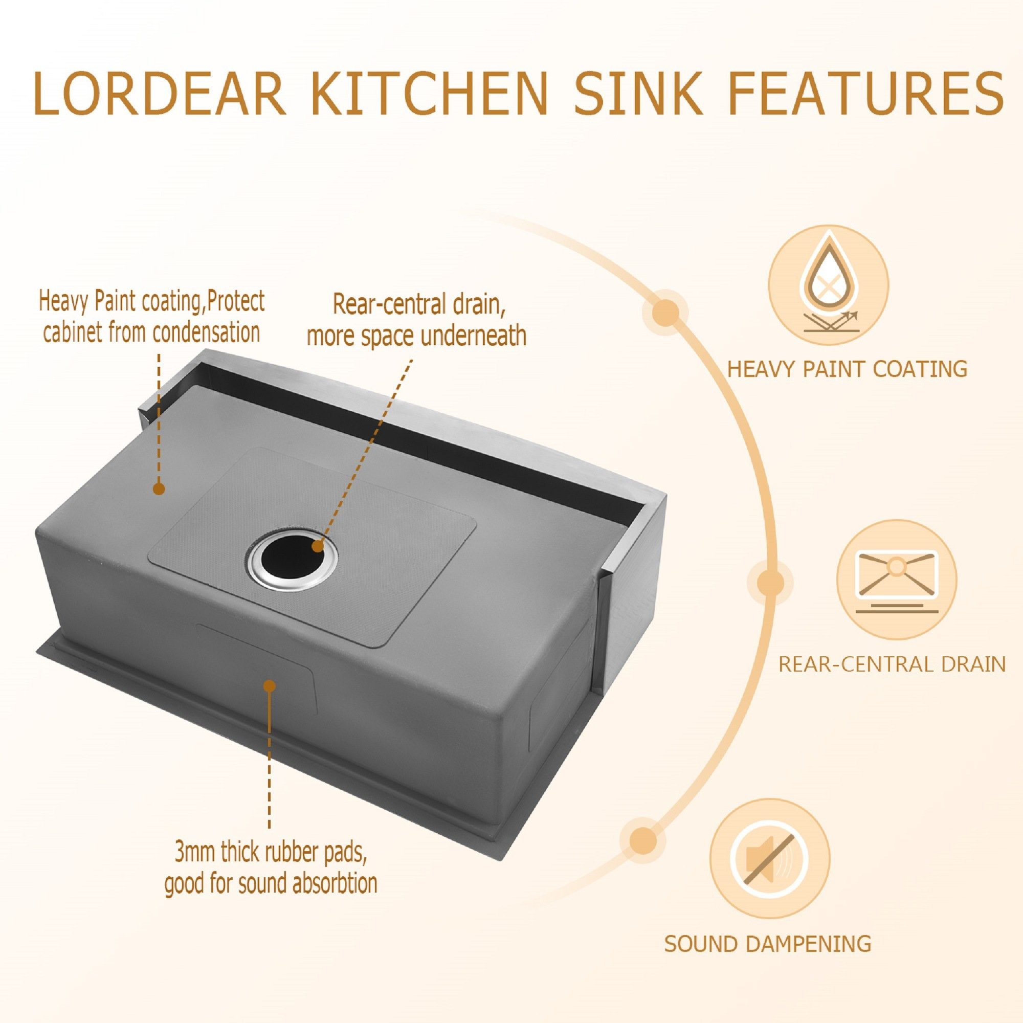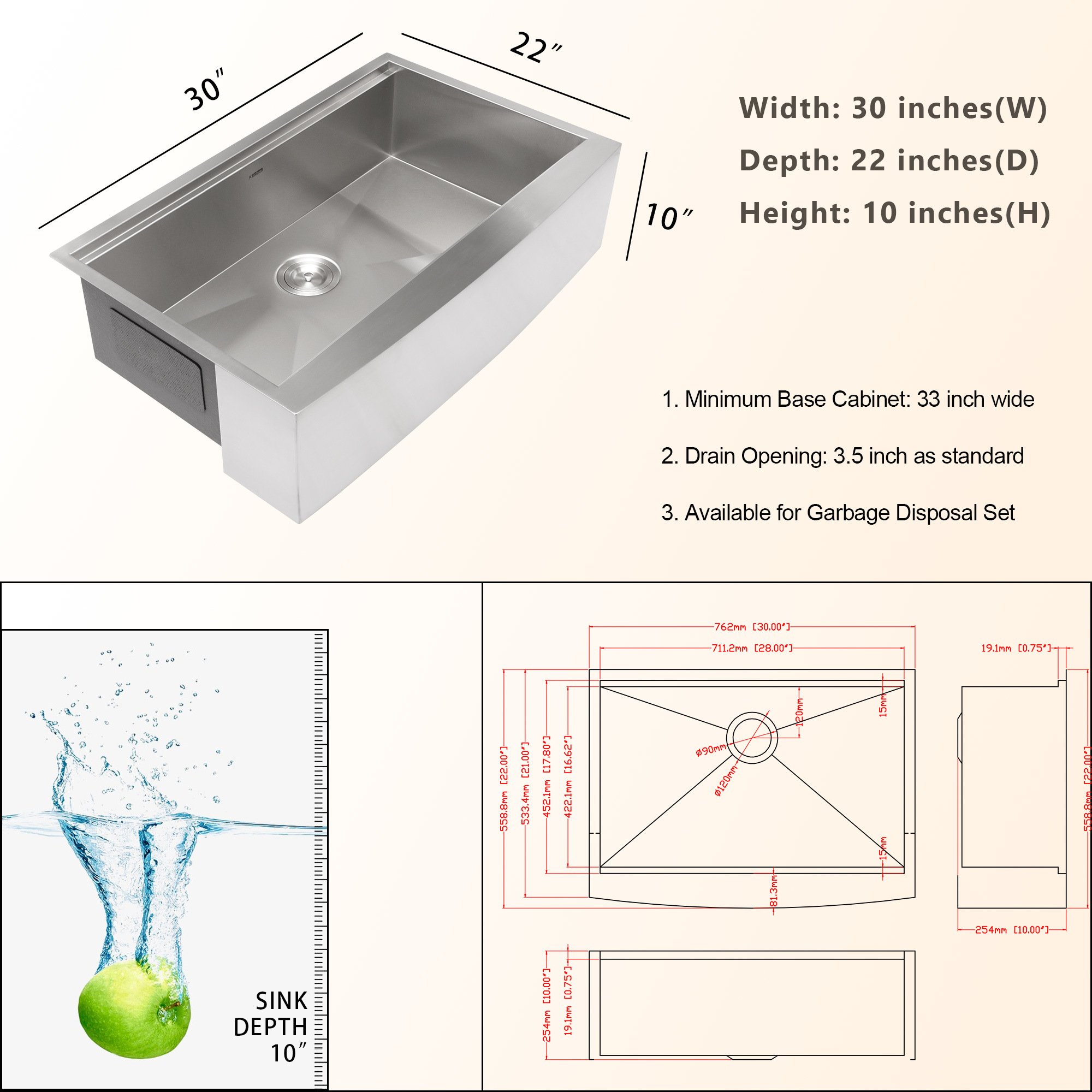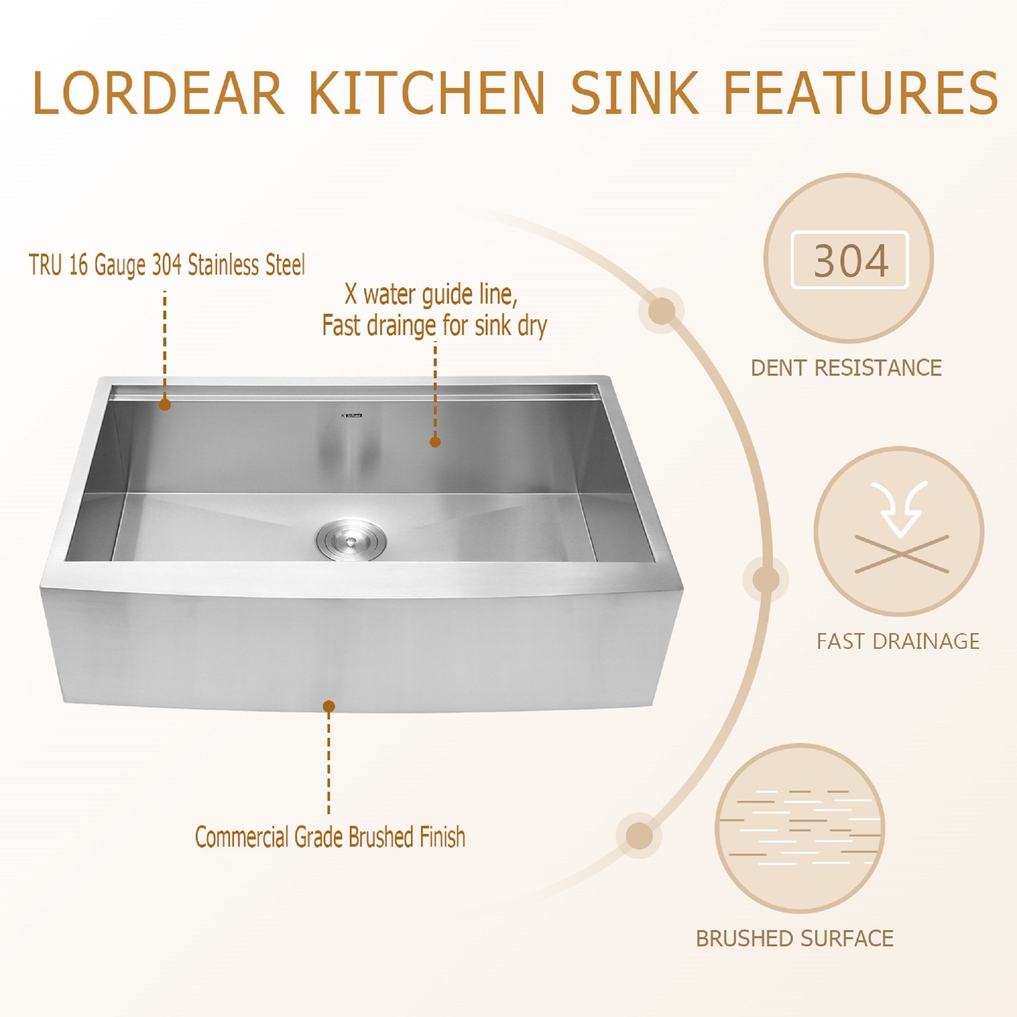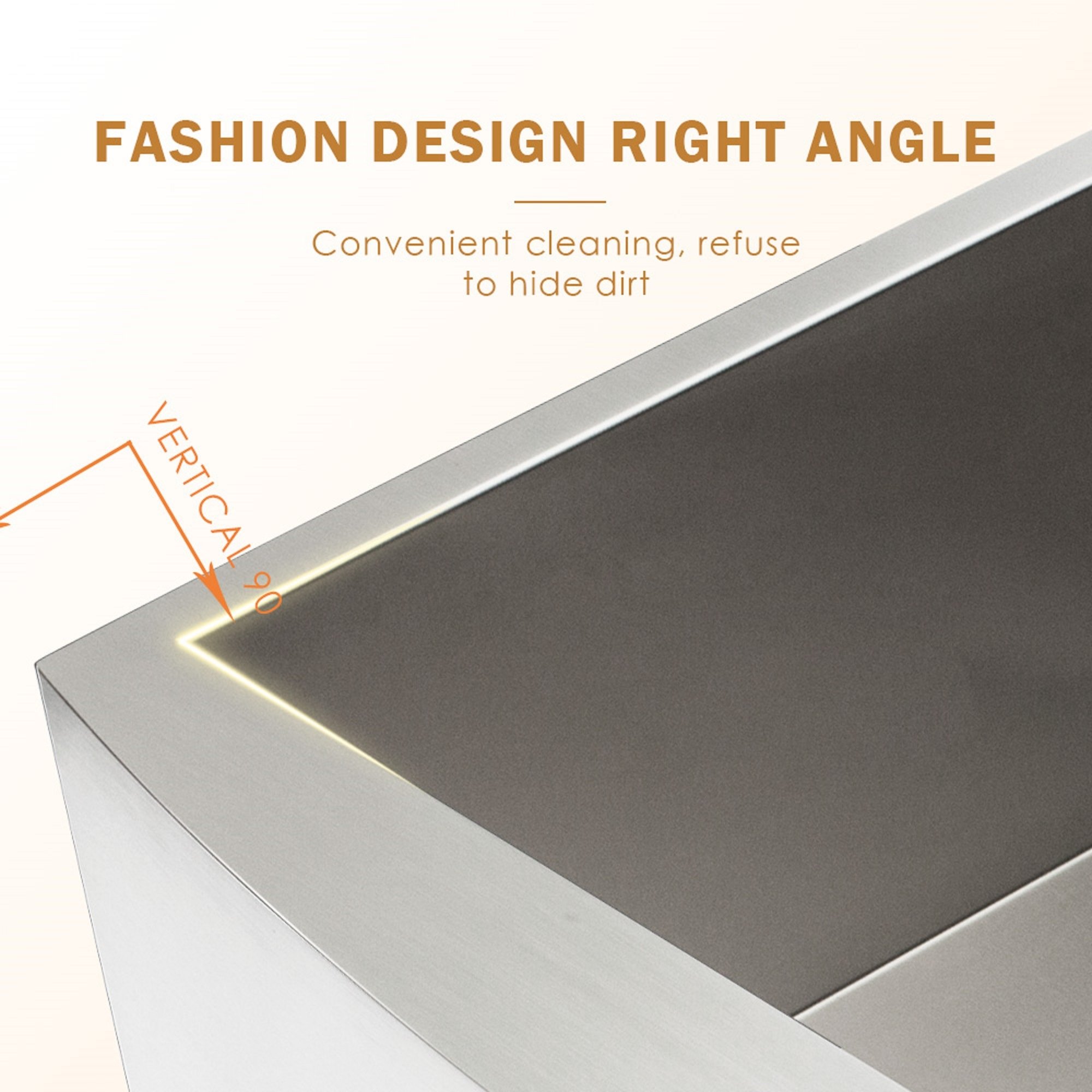 1.Superior Quality Material: The 30 farmhouse sink is constructed with dent-resistant T304 stainless steel in TRU16 real 16-gauge for superior strength and durability.Will never rust or stain. Easy to clean and long-lasting.