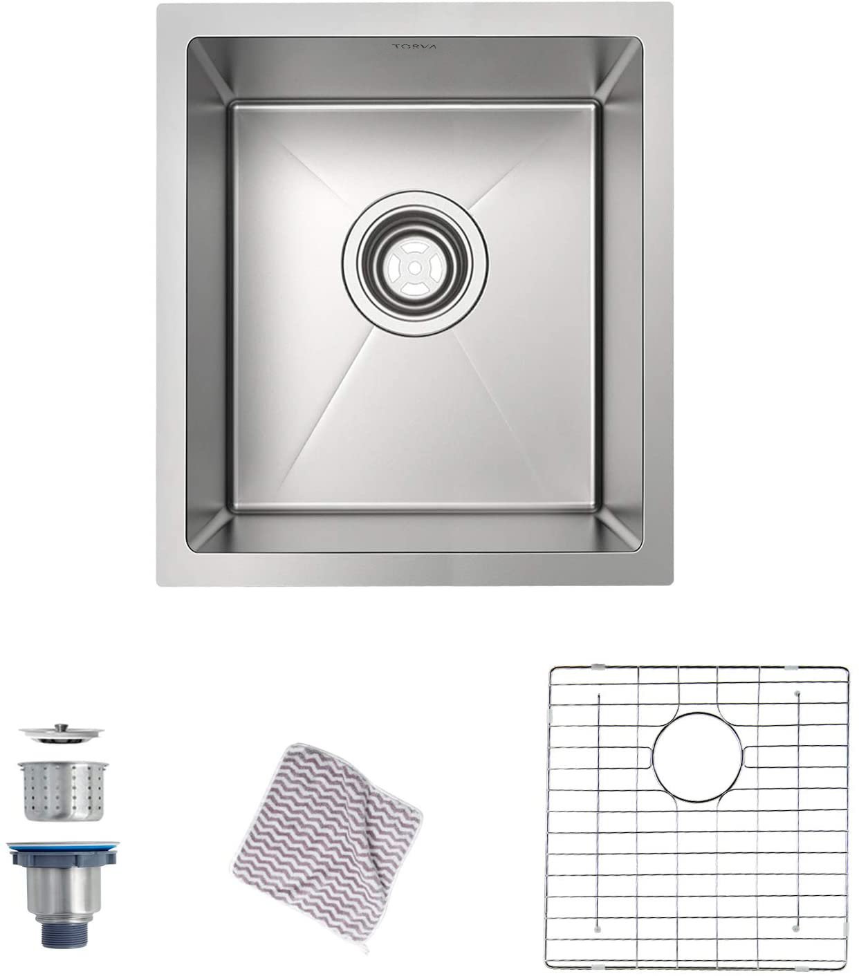 15" x 17" stainless steel single bowl kitchen sink offers professoional style with easy to clean curved corners.