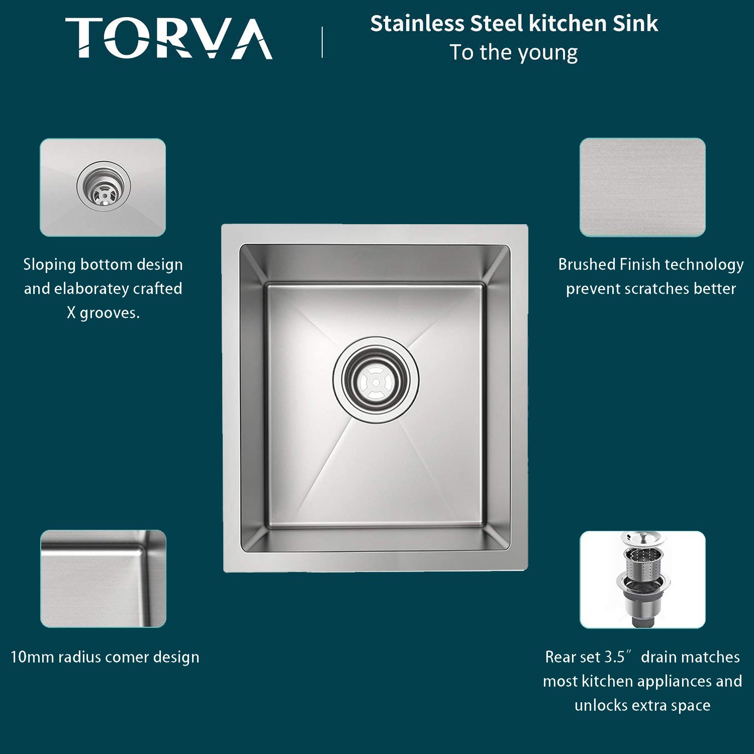 15" x 17" stainless steel single bowl kitchen sink offers professoional style with easy to clean curved corners.