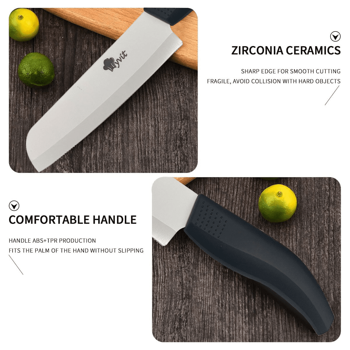 This ceramic knife set is the perfect complement to every kitchen and is perfect for so many slicing jobs. They are lightweight for ease of use in repetitive slicing tasks, producing less fatigue on hands and wrists. Our ceramic blades are sharp and the cutting edge will thinly fruits and vegetables, it will becoming a favorite knife in the kitchen.