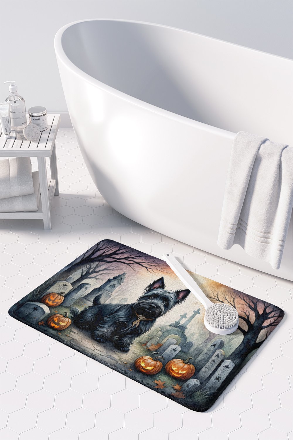 Scottish Terrier Spooky Halloween Memory Foam Kitchen Mat Machine Washable Anti-Fatigue Mat Cushion Comfort Bath Mat or Kitchen Rug