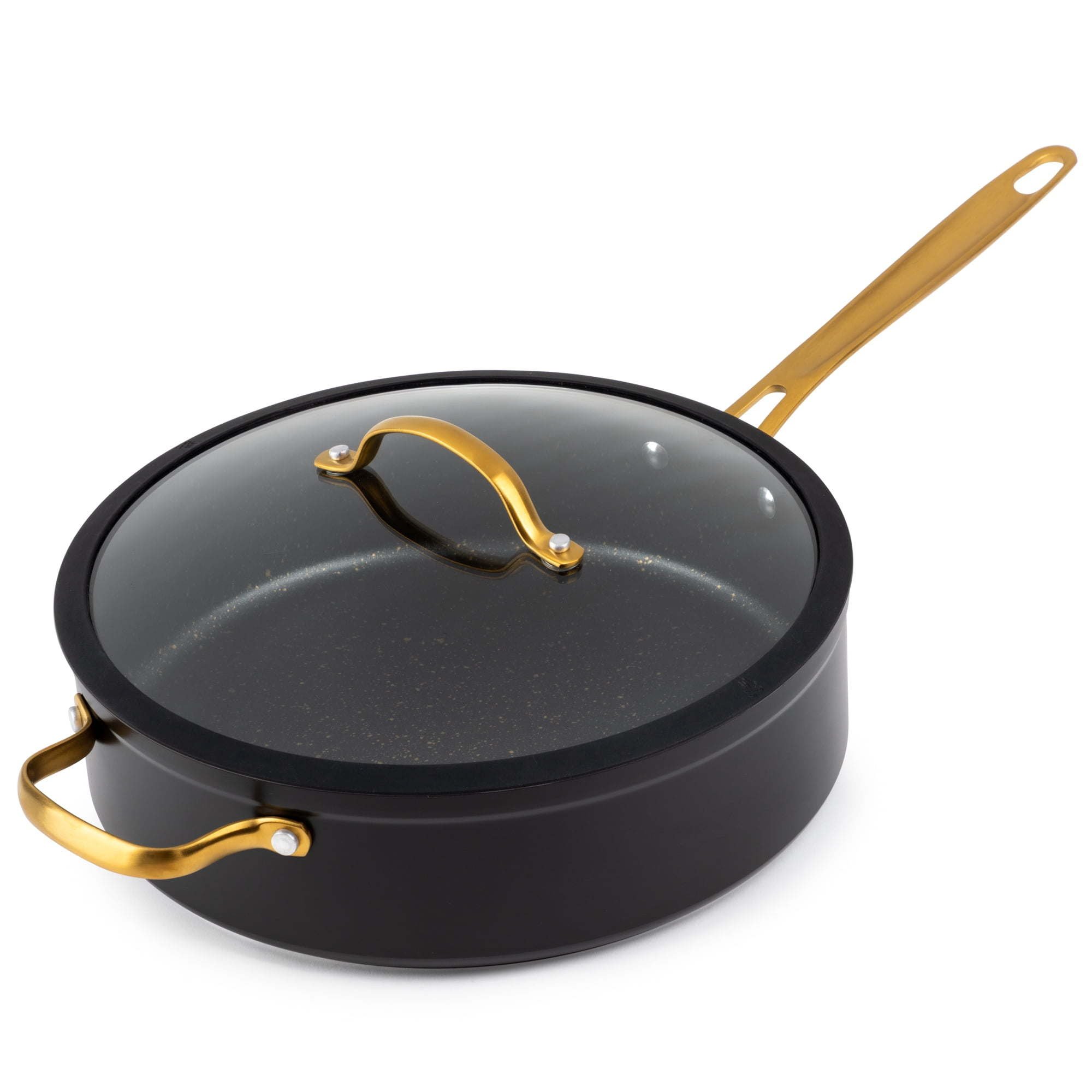 Thyme & Table Non-Stick 5 QT Signature Saute Pan with Glass Lid, Black & Gold